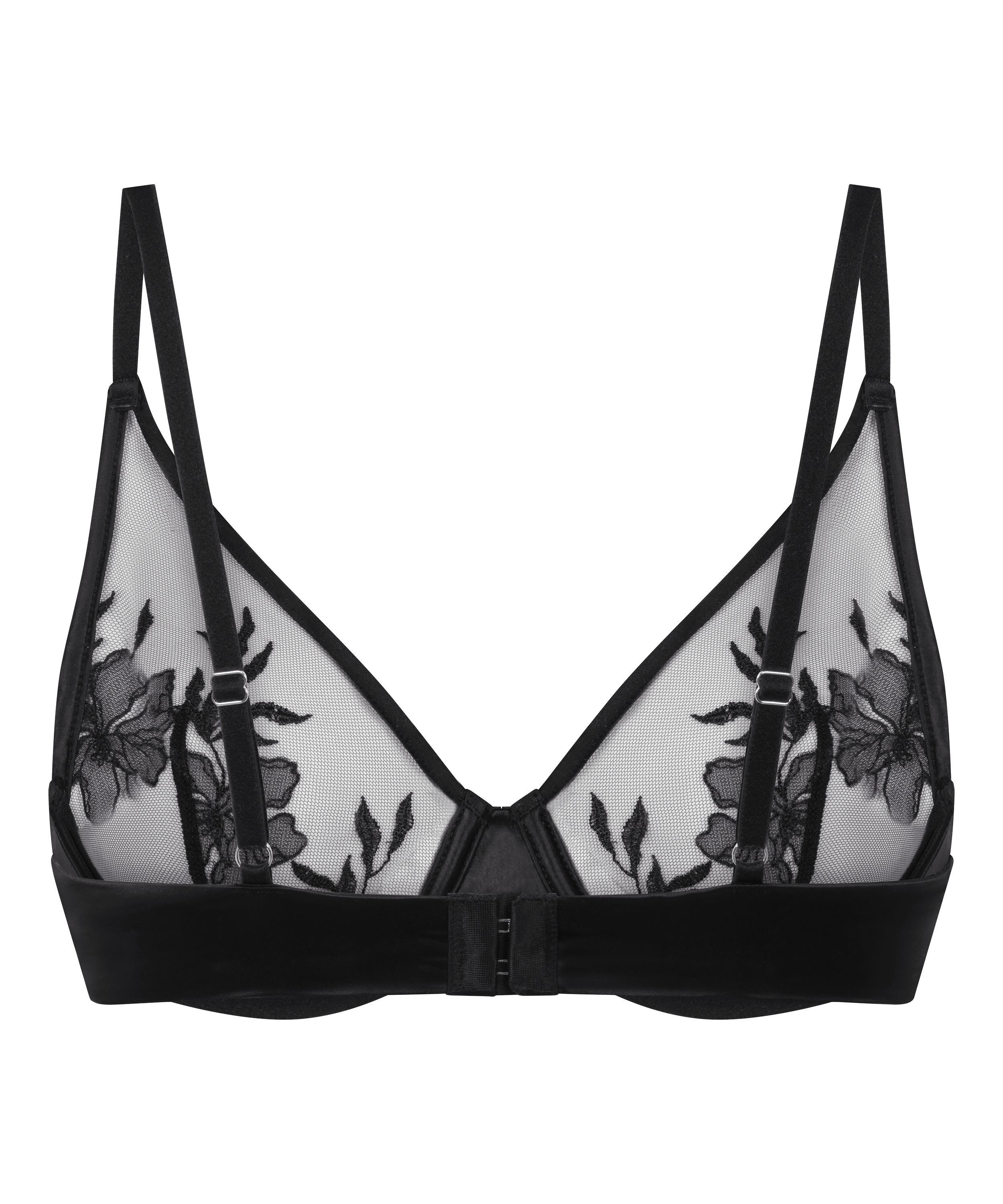 Denne bh er delikat og dristig og er designet til at hylde din naturlige form med et strejf af romantisk elegance. Mesh-skålene er udsmykket med indviklet blomsterbroderi, hvilket skaber et blødt og feminint look, der føles lige så smukt, som det ser ud. Den dybe V-udskæring fremhæver din décolleté, mens skålene med bøjle giver et diskret løft og støtte uden ekstra vattering. Kombiner den med din yndlingsunderdel for et fuldendt look.
