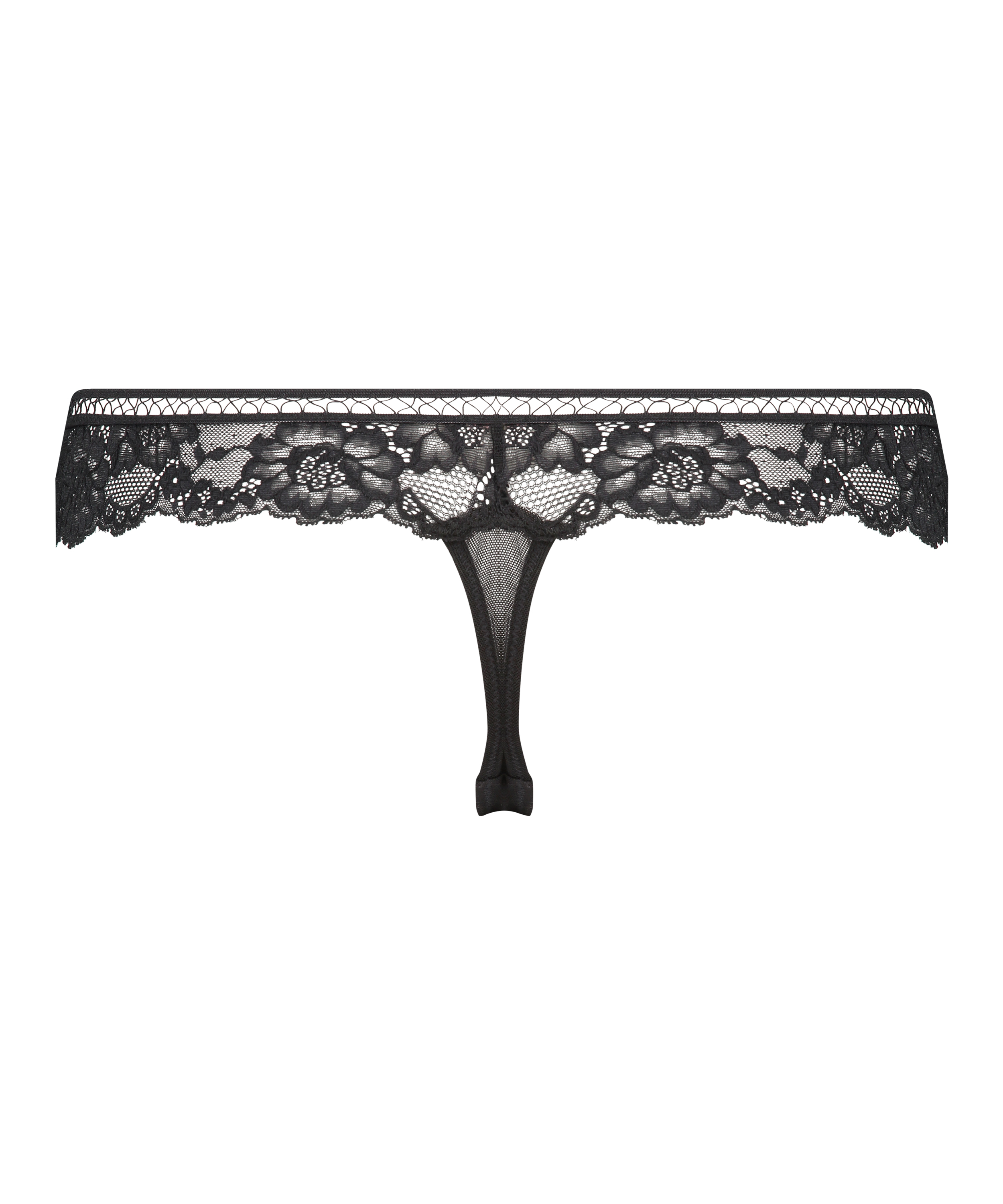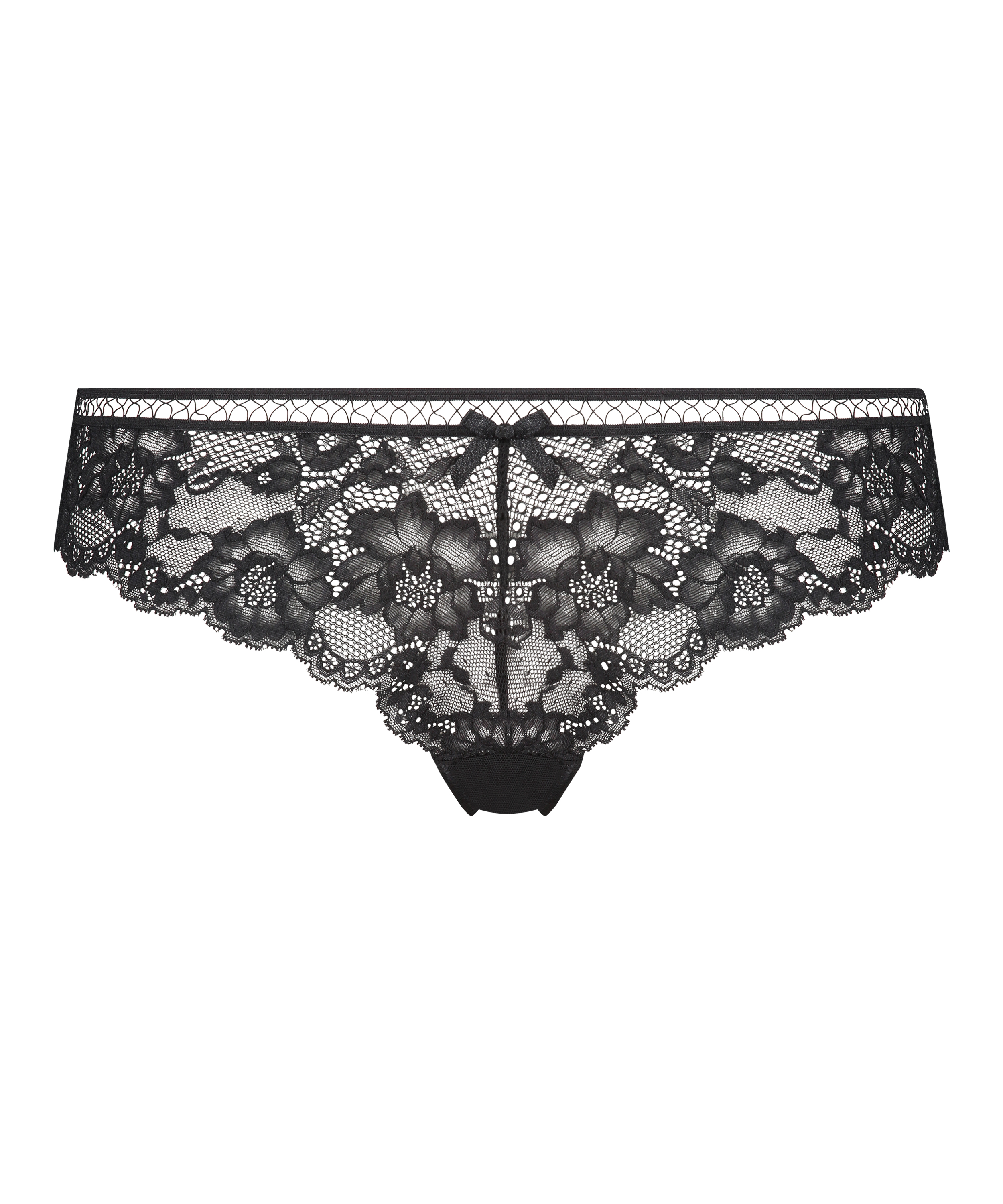 Hipster g-streng med blonde detaljer og en sløjfe foran. Findes i flere farver.