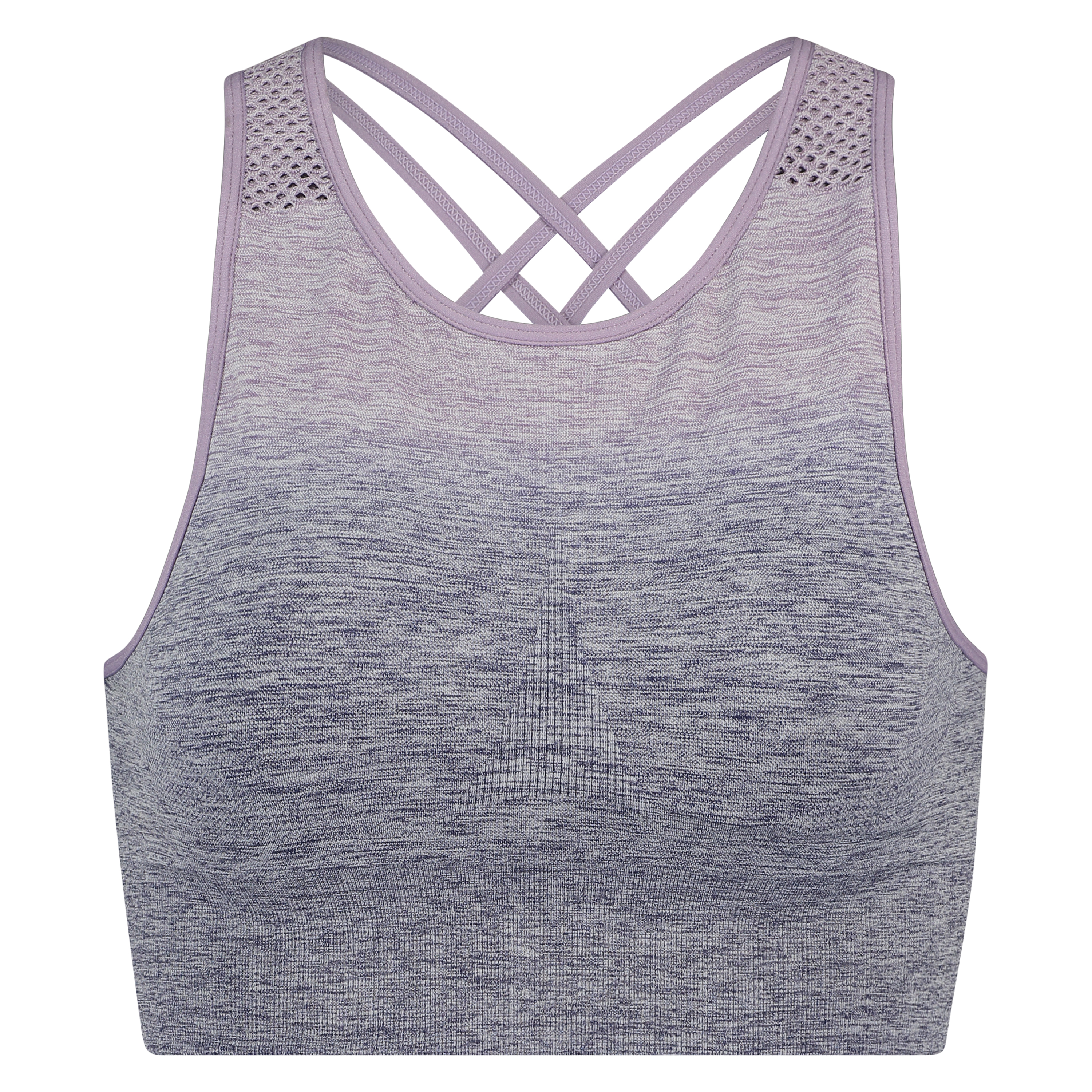 Denne formstøbte sports-bh giver middel støtte og er derfor egnet til workout med en indsats på et mellemhøjt niveau. Pasformen giver størst mulig bevægelsesfrihed, og sidder rigtigt behageligt takket være det brede støttebånd. Den er med høj hals og er forsynet med sjove og strappy detaljer bagpå. Denne bh kombineret med en matchende legging og du har det komplette look.