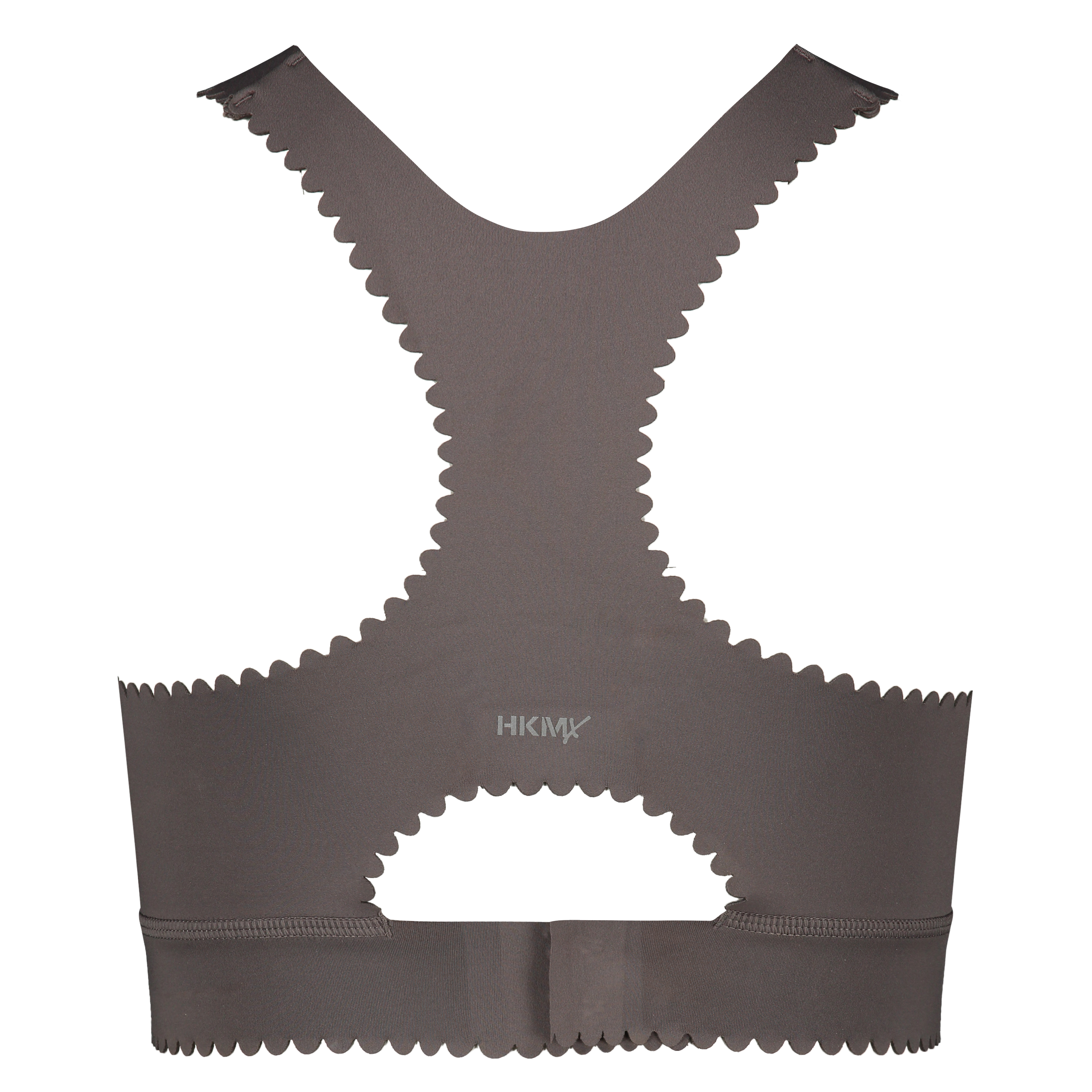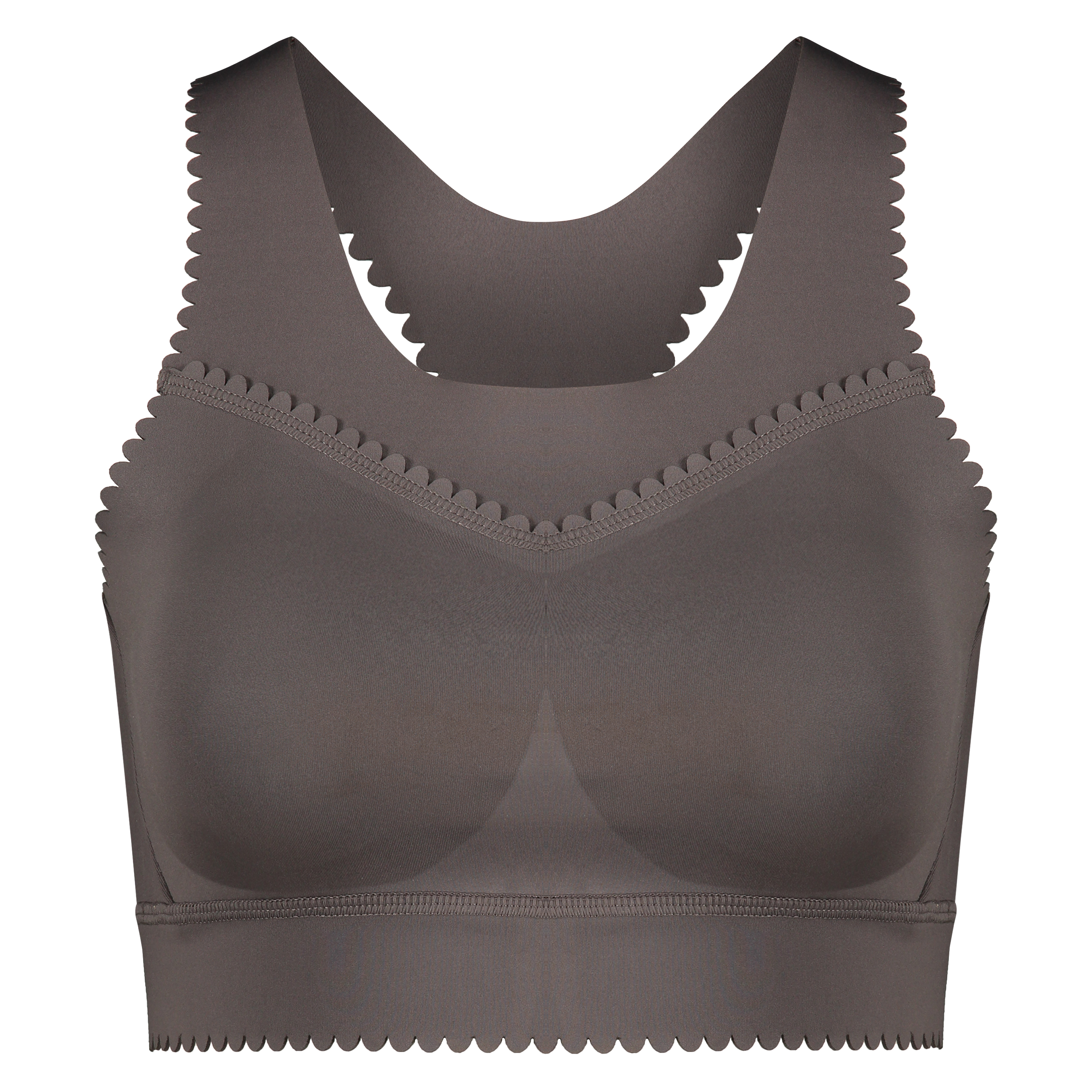 Denne sports-bh er perfekt, når du laver din workout! Bh'en er forsynet med kanter med muslingemønster og har racerback. Fyldet kan tages ud. Kombinér med en matchende sportslegging for et smukt sportssæt!