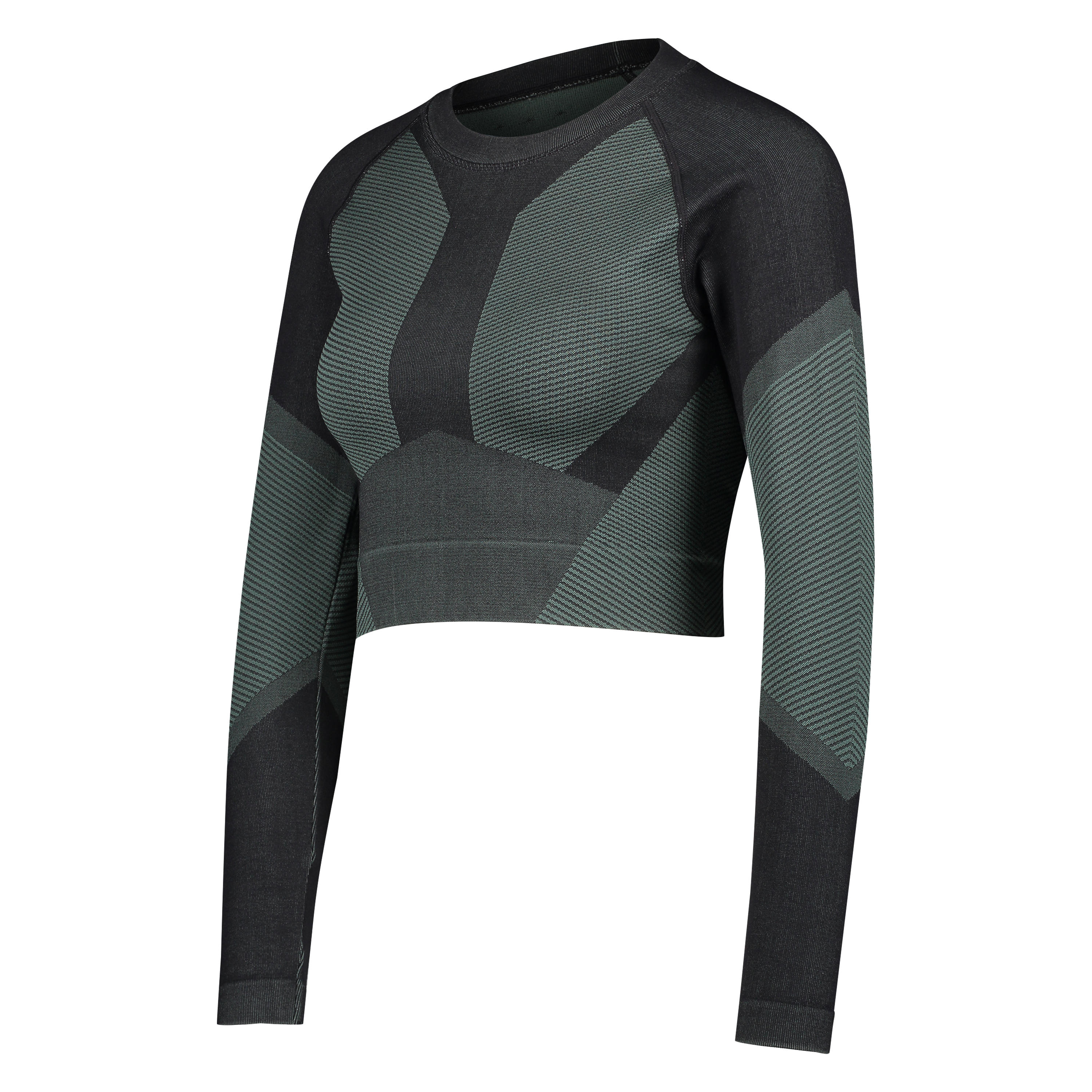 Denne sømløse top runder dit fitness-look flot af! Toppen er lavet af elastisk materiale, så den sidder tæt til kroppen; perfekt til en effektiv workout. Kombinér med den matchende sports-bh for et komplet sæt! Fremstillet af 55 % genanvendt polyamid.