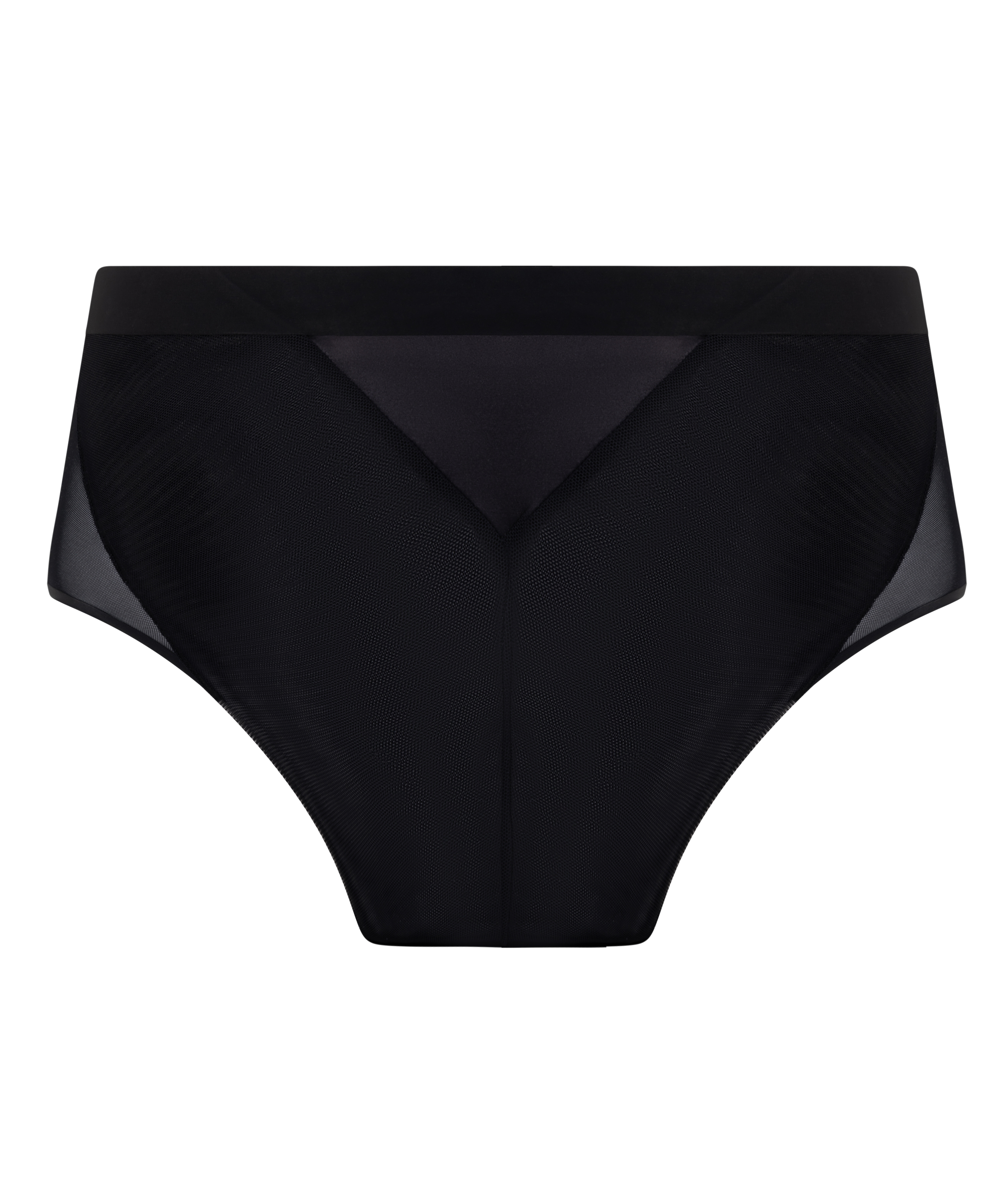 Høj trusse i et blødt og fleksibelt materiale, der giver en flot pasform. Denne brasilianske trusse er sømløs og kan ikke ses under stramt tøj. Sæt den sammen med en matchende bh for at fuldende sættet! En del af vores Noir-kollektion.