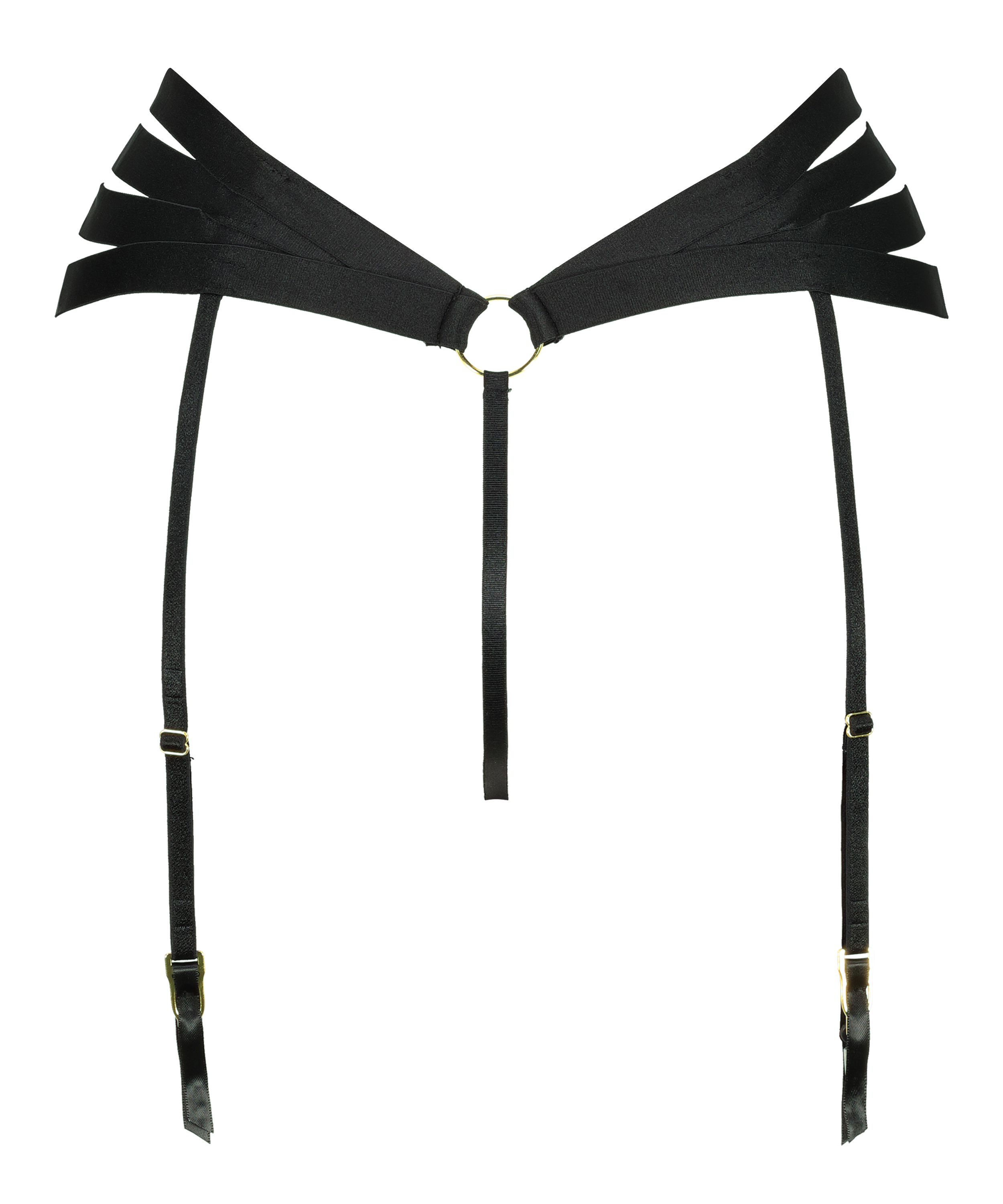 Skab et spændende og sexet look med denne høje g-streng! Trussen har stropperede detaljer og en masse blonder. Del af vores Private-kollektion. Brug den i kombination med matchende lingeri og benmode.