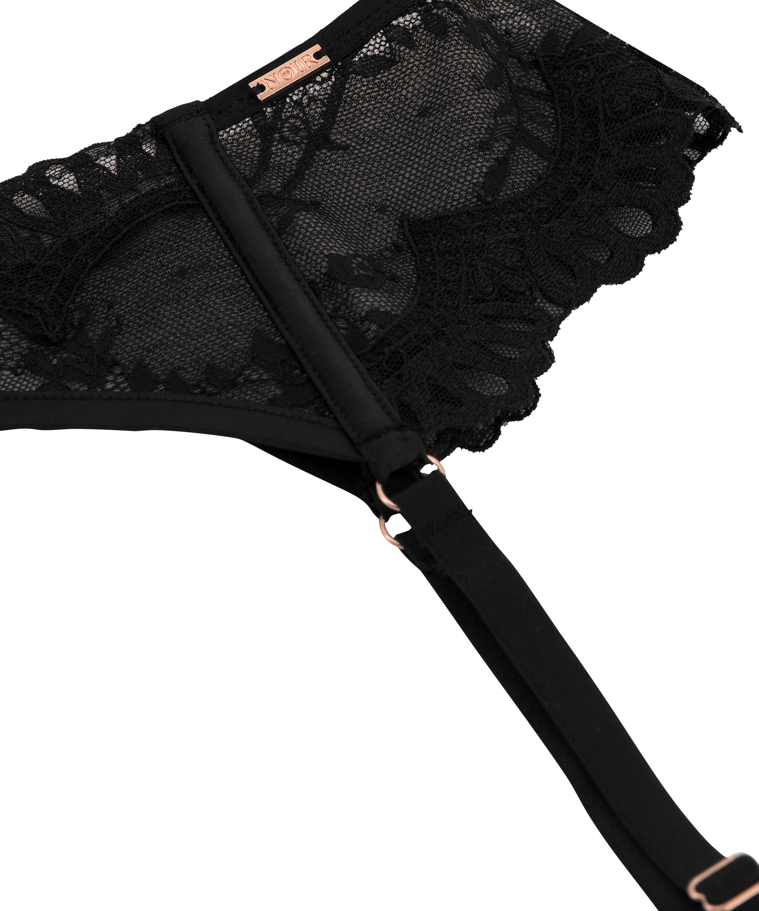 Fuldend dit lingerisæt med denne pragtfulde hofteholder. Del af Noir-kollektionen.