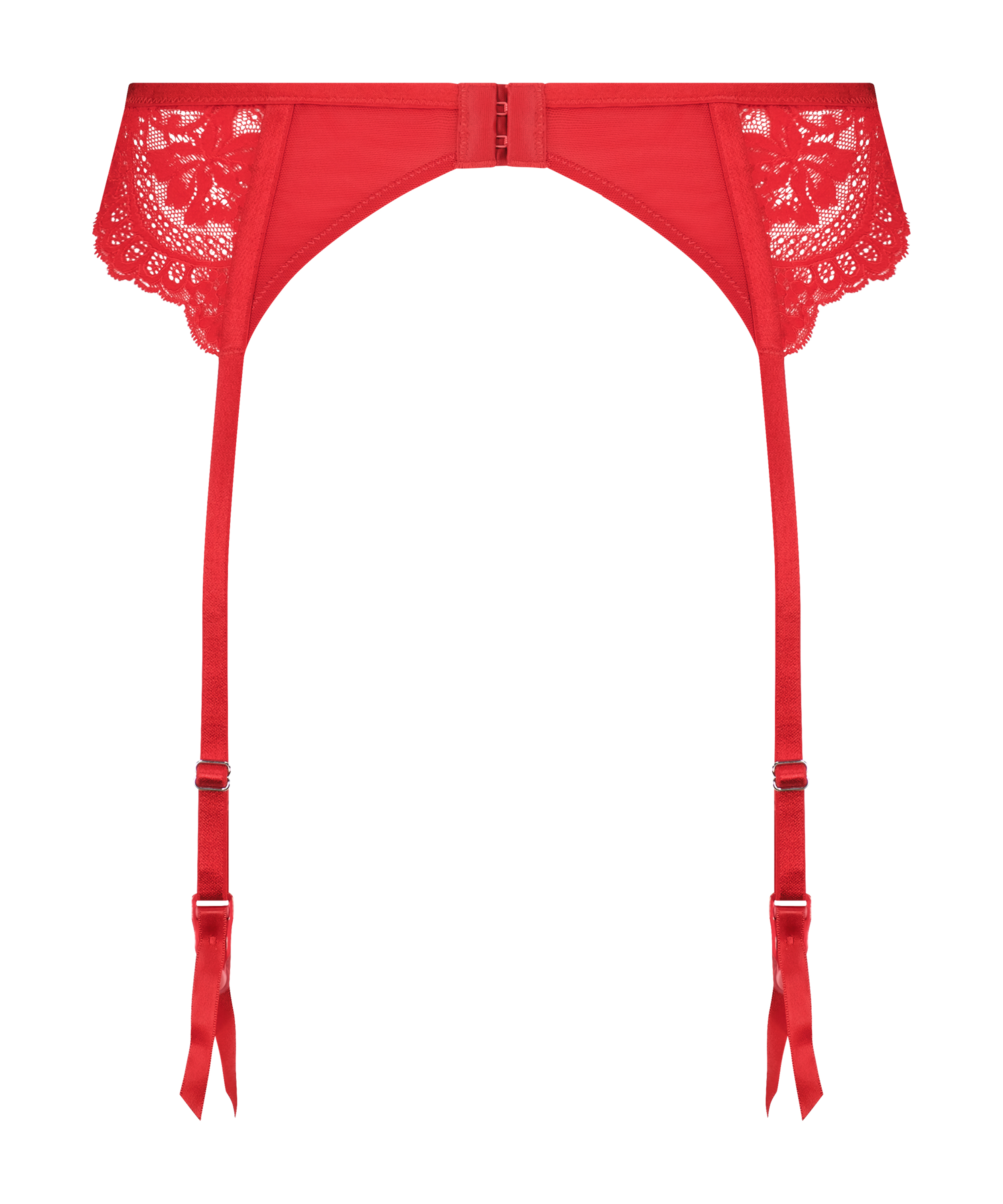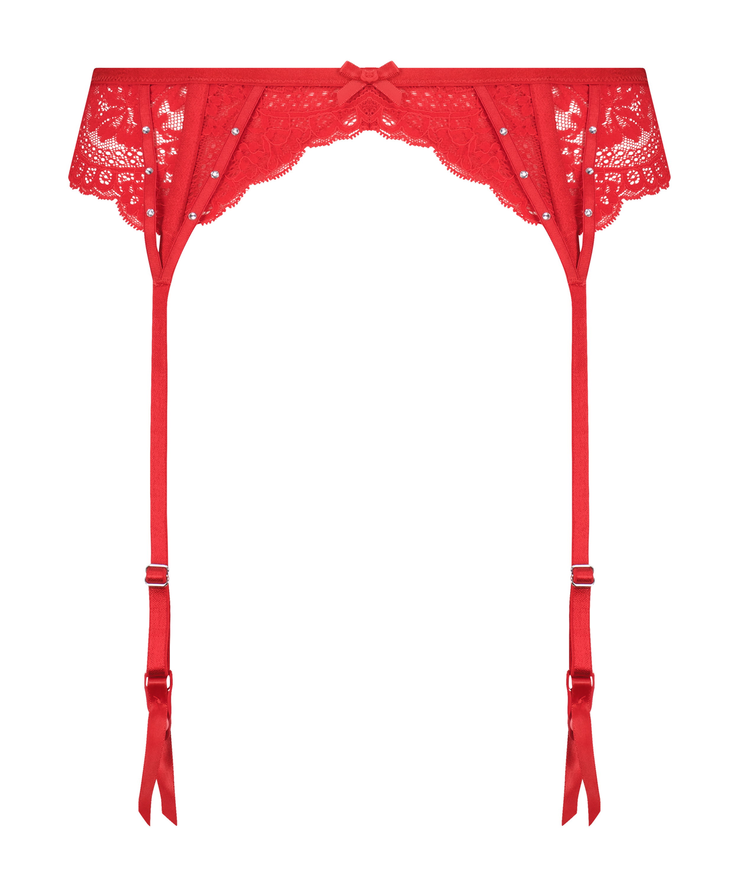 En smuk hofteholder med et klassisk design, der er gjort interessant med dets pynt i rhinsten. Blomstret blondedesign langs fronten, lukning med hægte- og malle i bagpanelet. Hofteholderbæltet former taljen og er flatterende på kroppen. Bær den med den matchende Mariah bh, trusse og trikotage for et smukt, fulendt lingerilook.
