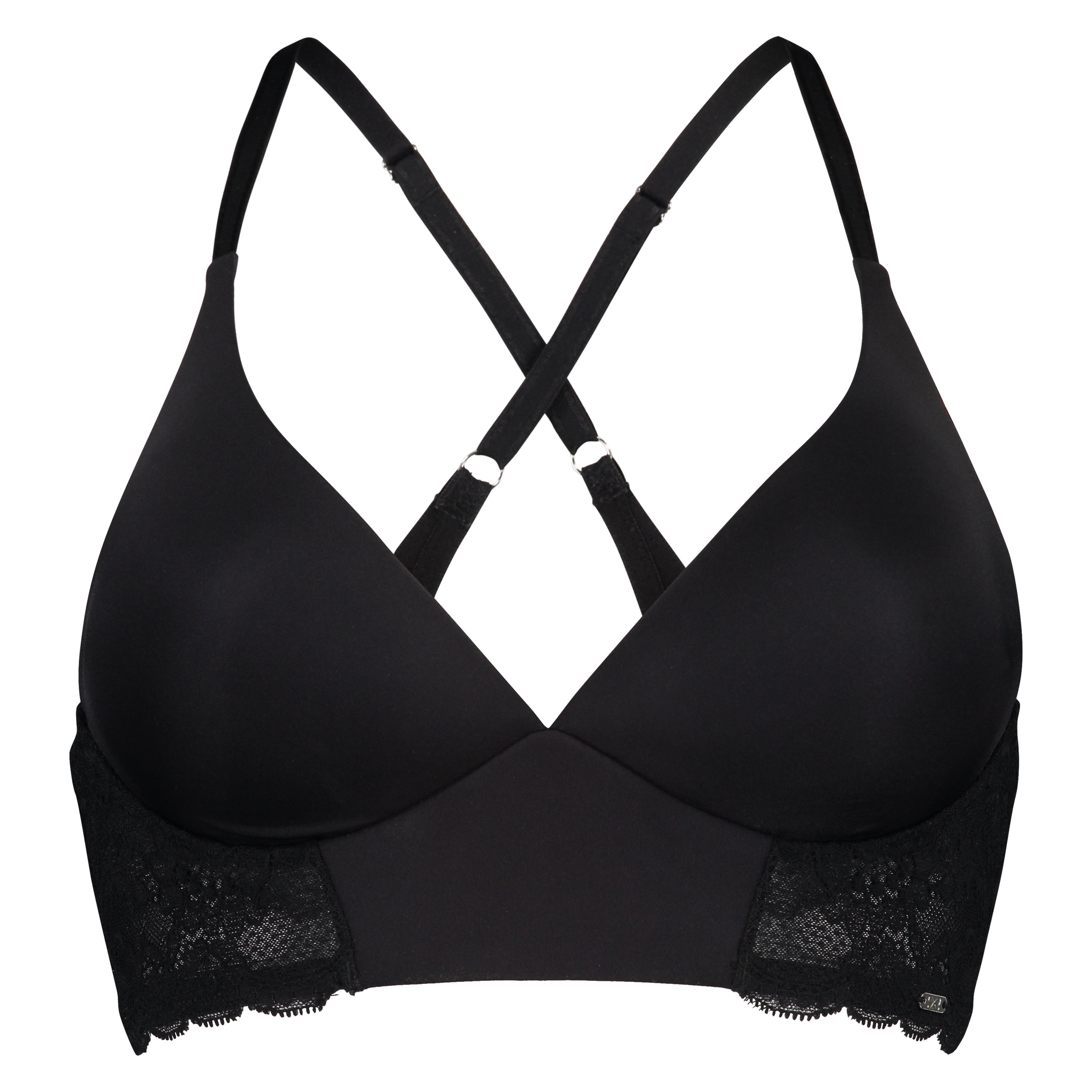 Comfort is the way to go. Denne bh er uden bøjler, men den er formstøbt, så din smukke, kvindelige silhouet bevares. Bærestykket er beklædt med blonder for et ekstra feminint look.