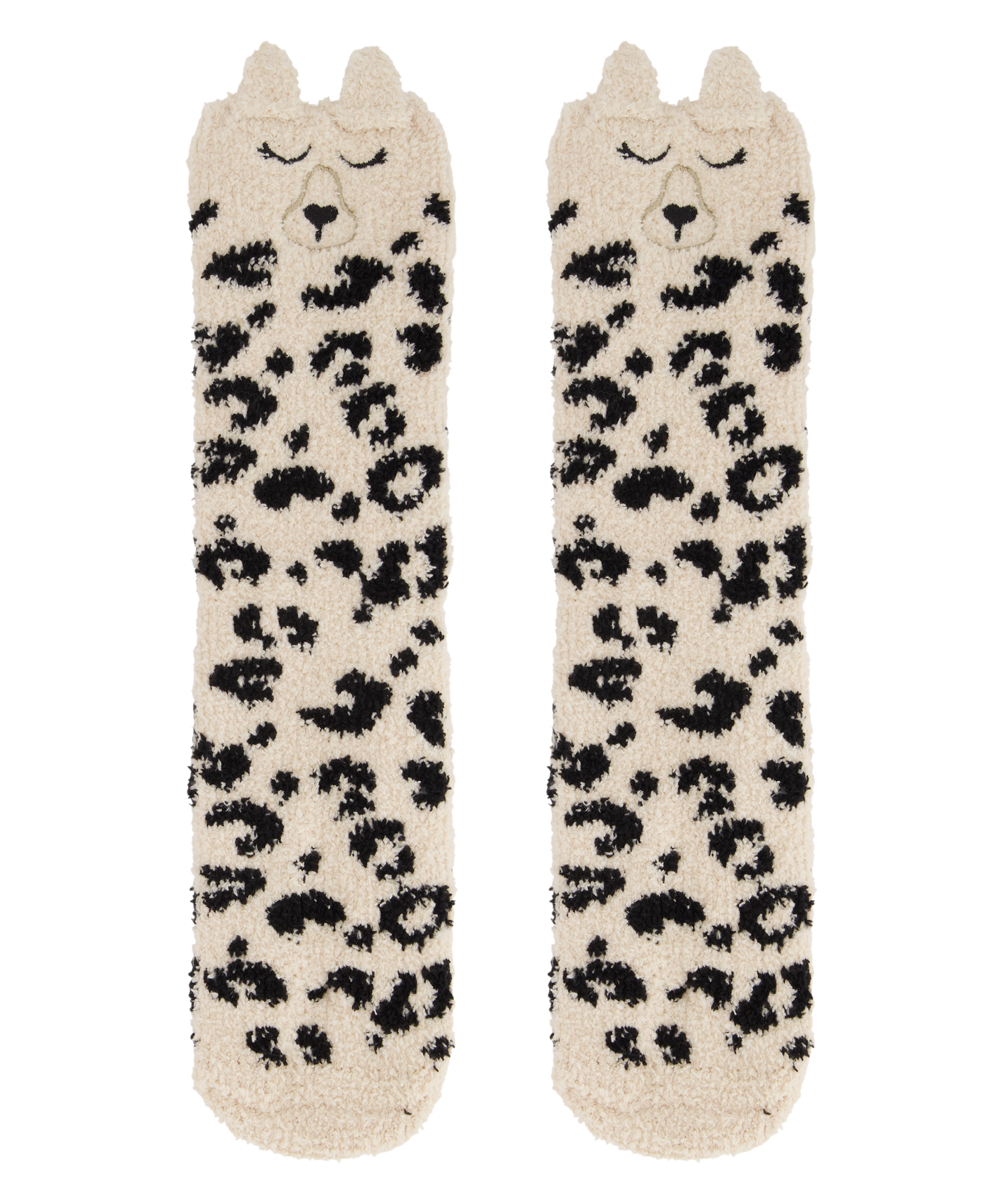 Hyg dig med varme, bløde sokker. Det sødeste sneleopardprint og de blødeste materialer, der holder dine fødder varme.