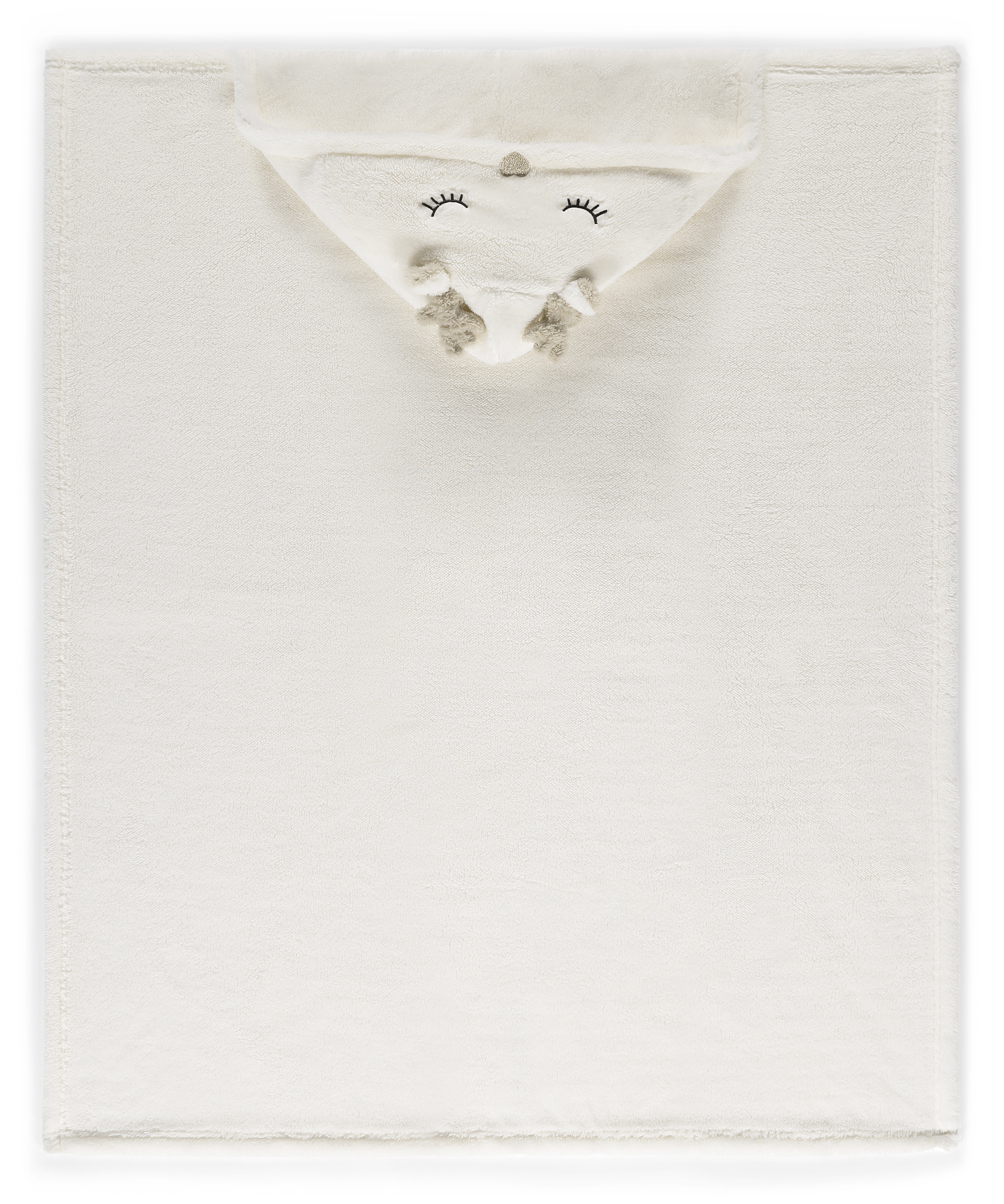 Dejligt om vinteren! Dette fluffy tæppe holder dig dejlig varm. Udført med en hætte med rensdyrdetaljer 125 cm × 170 cm.