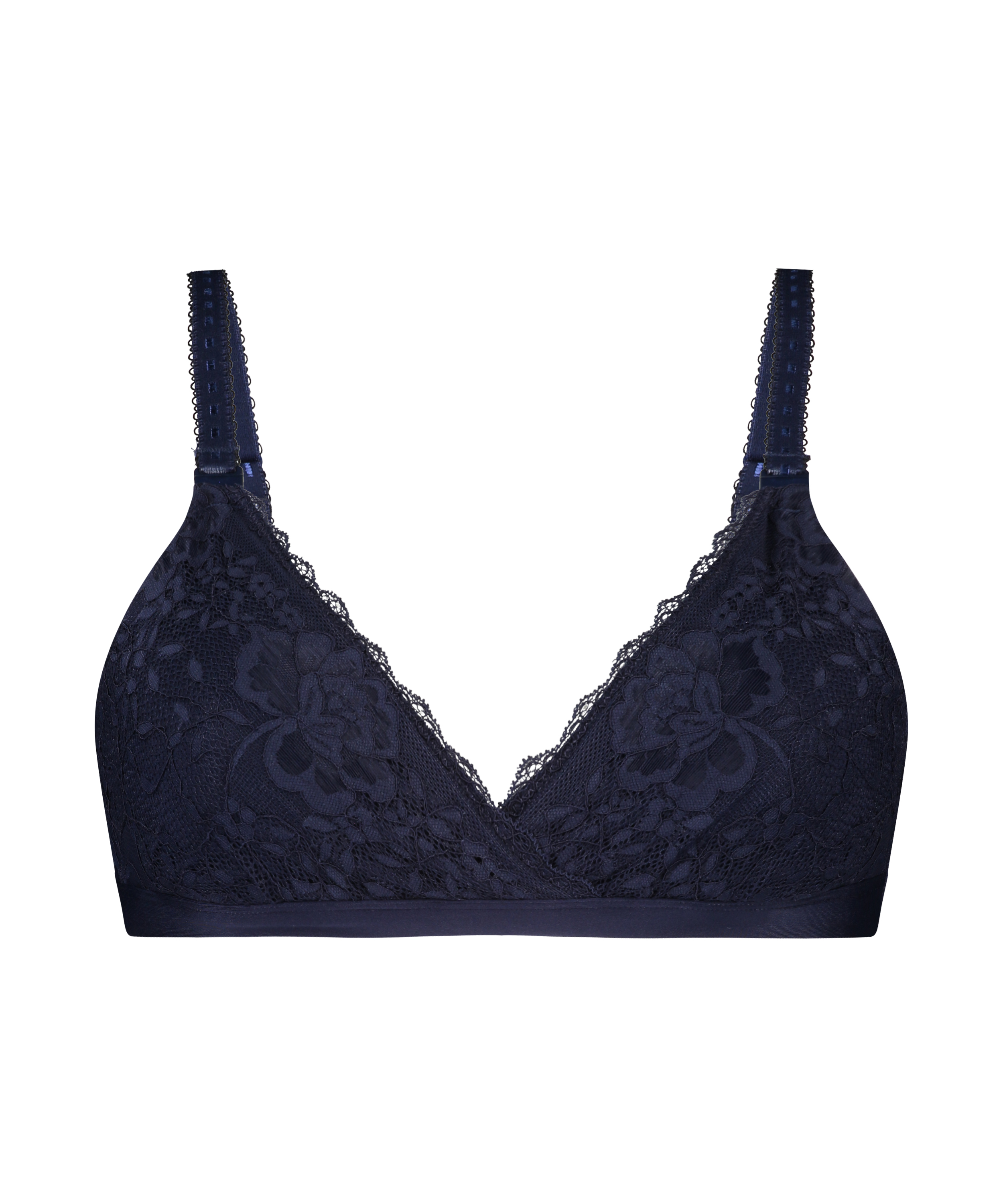 Denne ikke-formstøbte amme-bh er ikke bare praktisk, men er også pæn at se på! Bh'en er forsynet med blonder over det hele, og sløjfen på forsiden runder bh'en fint af! Skålene kan løsnes, så det er bekvemt for din baby at blive lagt til brystet.
