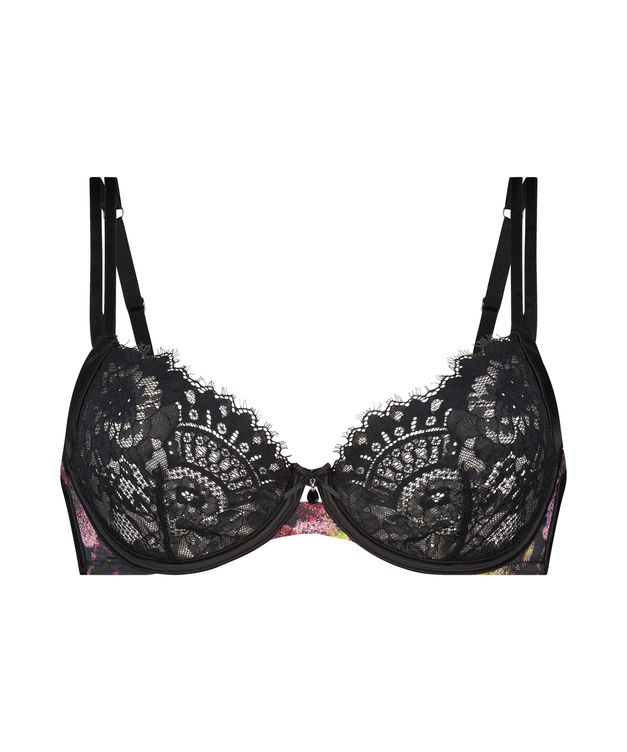 Vær i centrum med denne luksuriøse blonde- og satin-bh med en flot, juvelbelagt sløjfe mellem skålene. Bøjlen støtter formen og justerbare stropper vil gøre, at du føler dig selvsikker og godt tilpas hele dagen. Sæt den sammen med dine yndlingsdele fra Amelie-sættet for at skabe et show-stopping look.