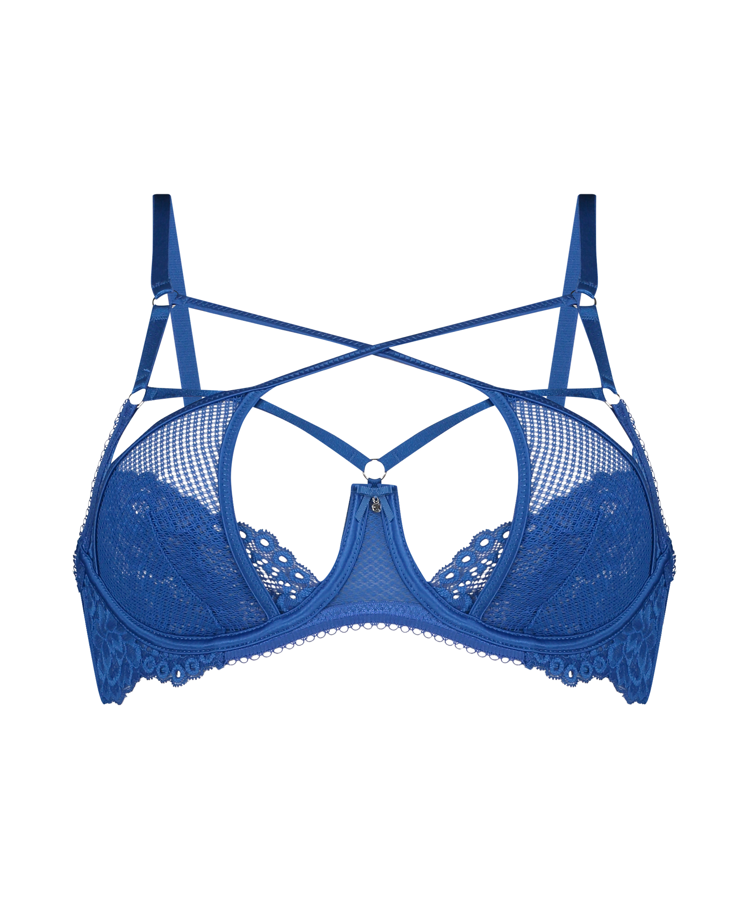 Gå efter et spændende lingerisæt med denne bh! Med strappy stropper og halvtransparent blondestof. En artikel fra Private kollektionen.