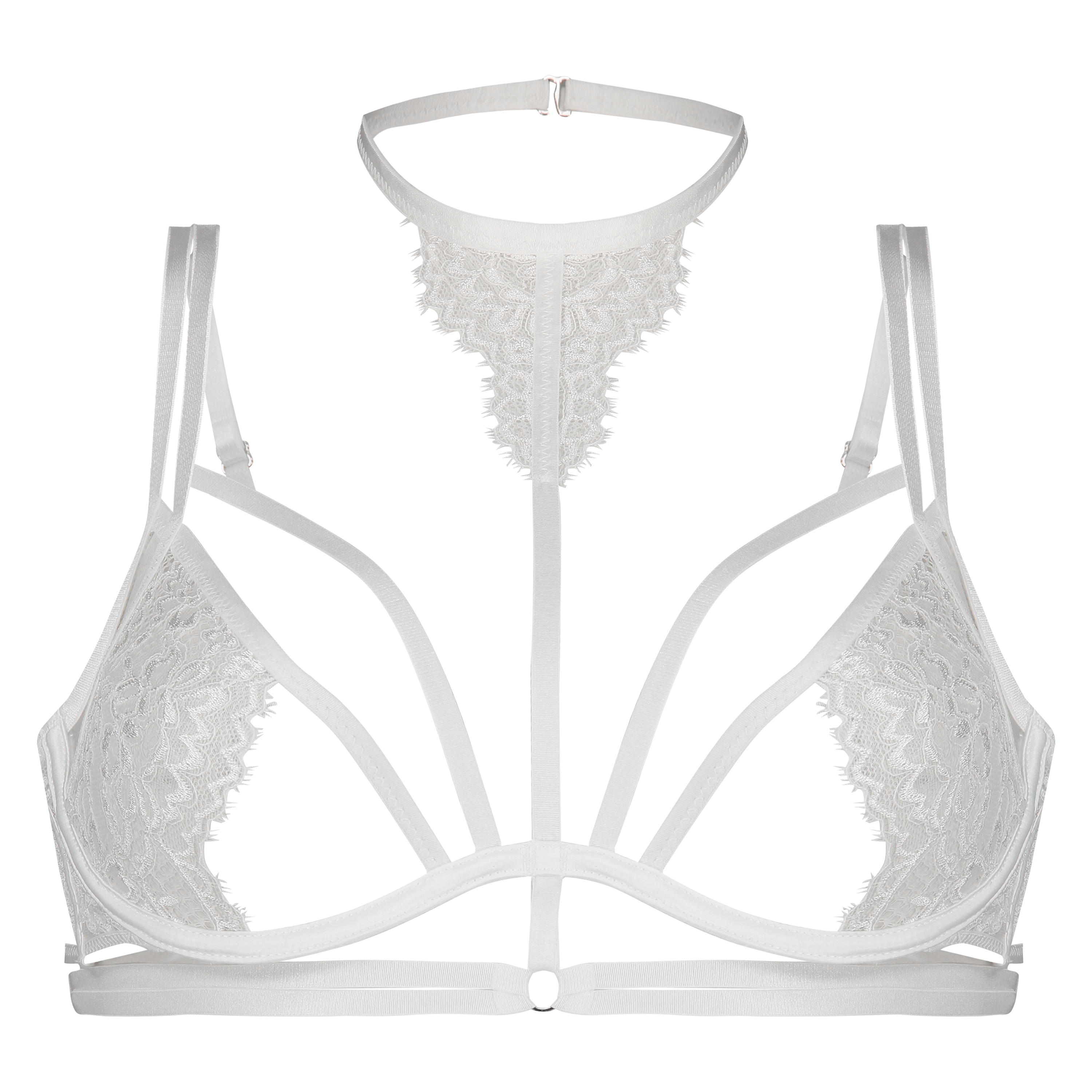 Denne ikke-formstøbte bøjle-bh er forsynet med blonder, derfor supersexet! Bh'en er med blondedetaljer rundt i nakken. Den er forsynet med ekstra mange strappy detaljer! Del af Private-Kollektion.