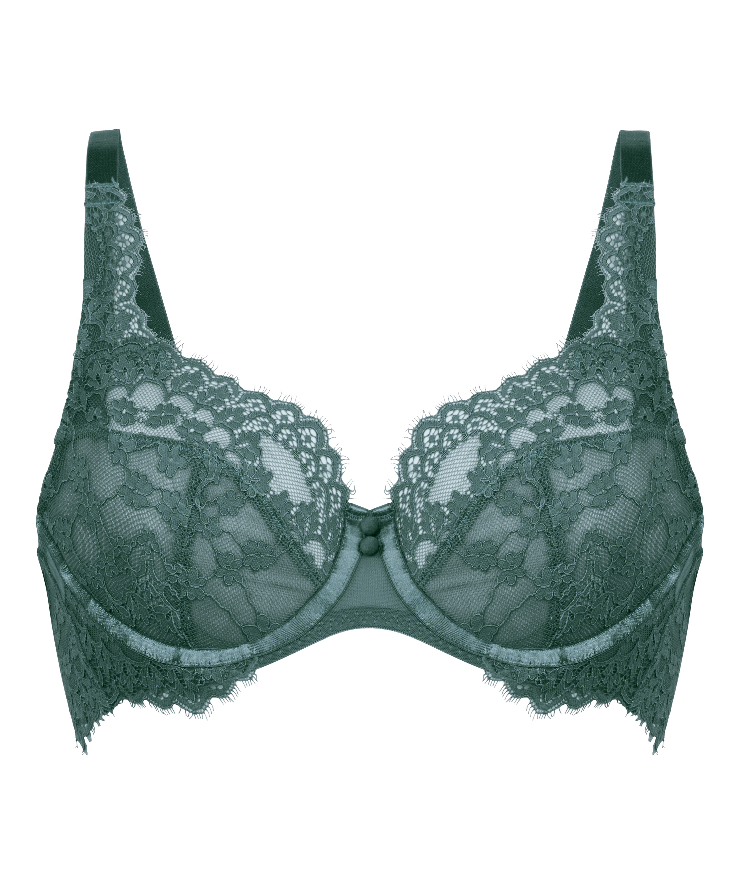 Se fantastisk ud i denne bh! Den er ikke formstøbt, halvgennemsigtig og indeholder mange blonder. Kombineret med matchende tilbehør har du et komplet sæt!