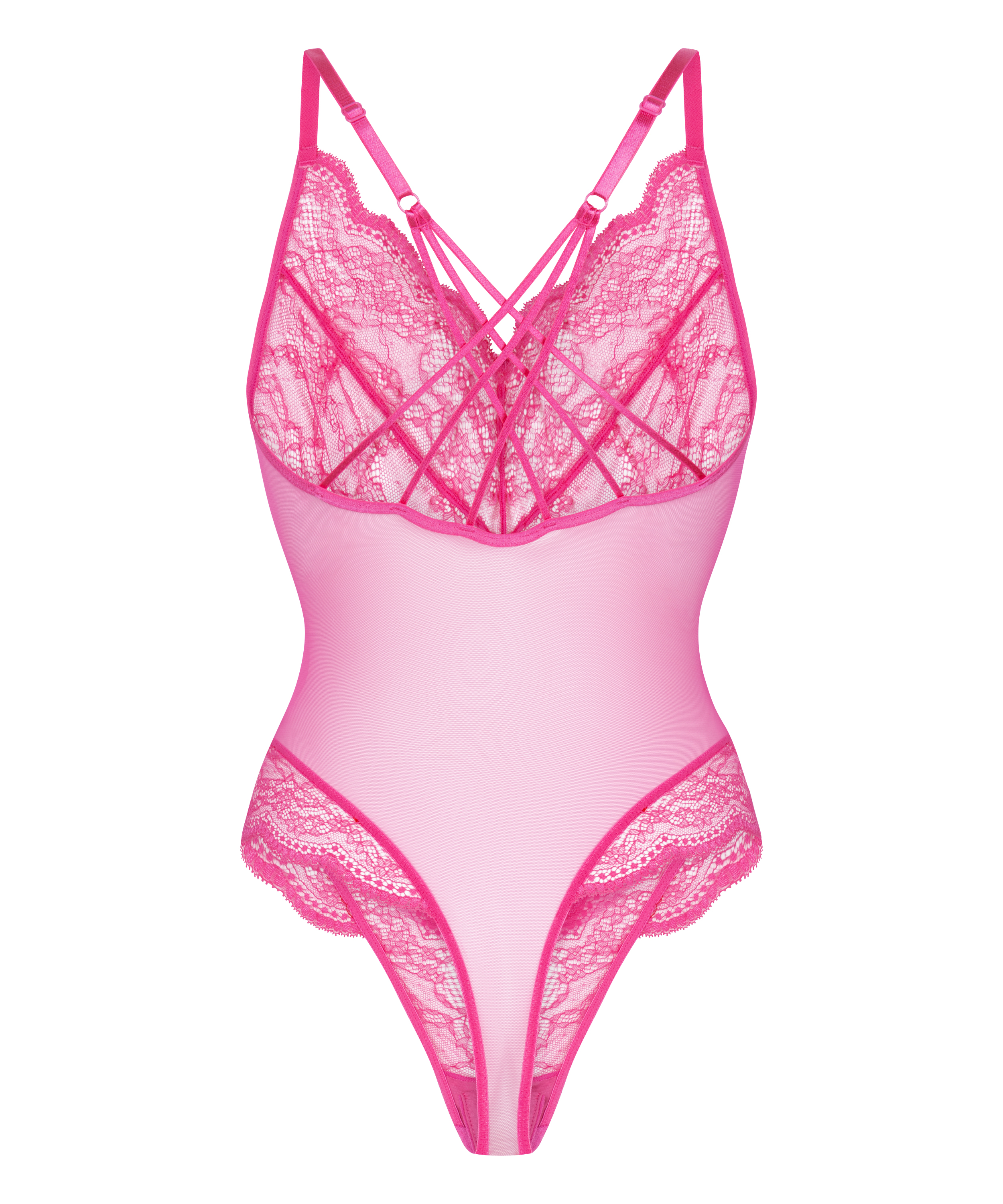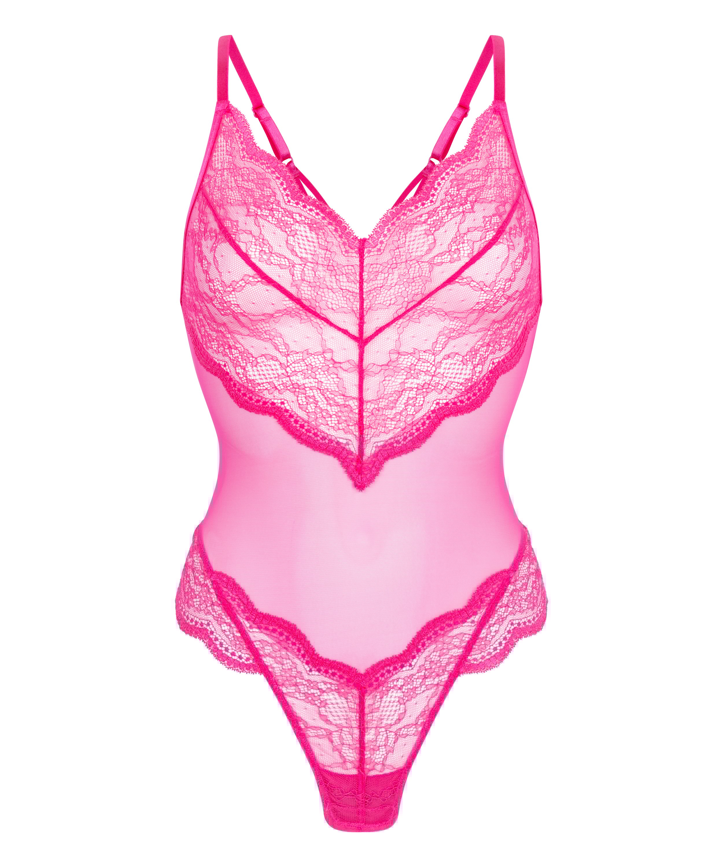 Denne body i blonde og mesh handler om ubesværet elegance. Med gennemsigtige paneler, delikat blomsterblonder og en kropsnær pasform er den perfekt til lag-på-lag-looket eller alene. Den dybe halsudskæring og den frække ryg giver et flirtende touch. Kombiner den med din yndlings-bh eller -strømper for et komplet, iøjnefaldende look. Ideel til elskere af blonderlingeri og markante bodyer.