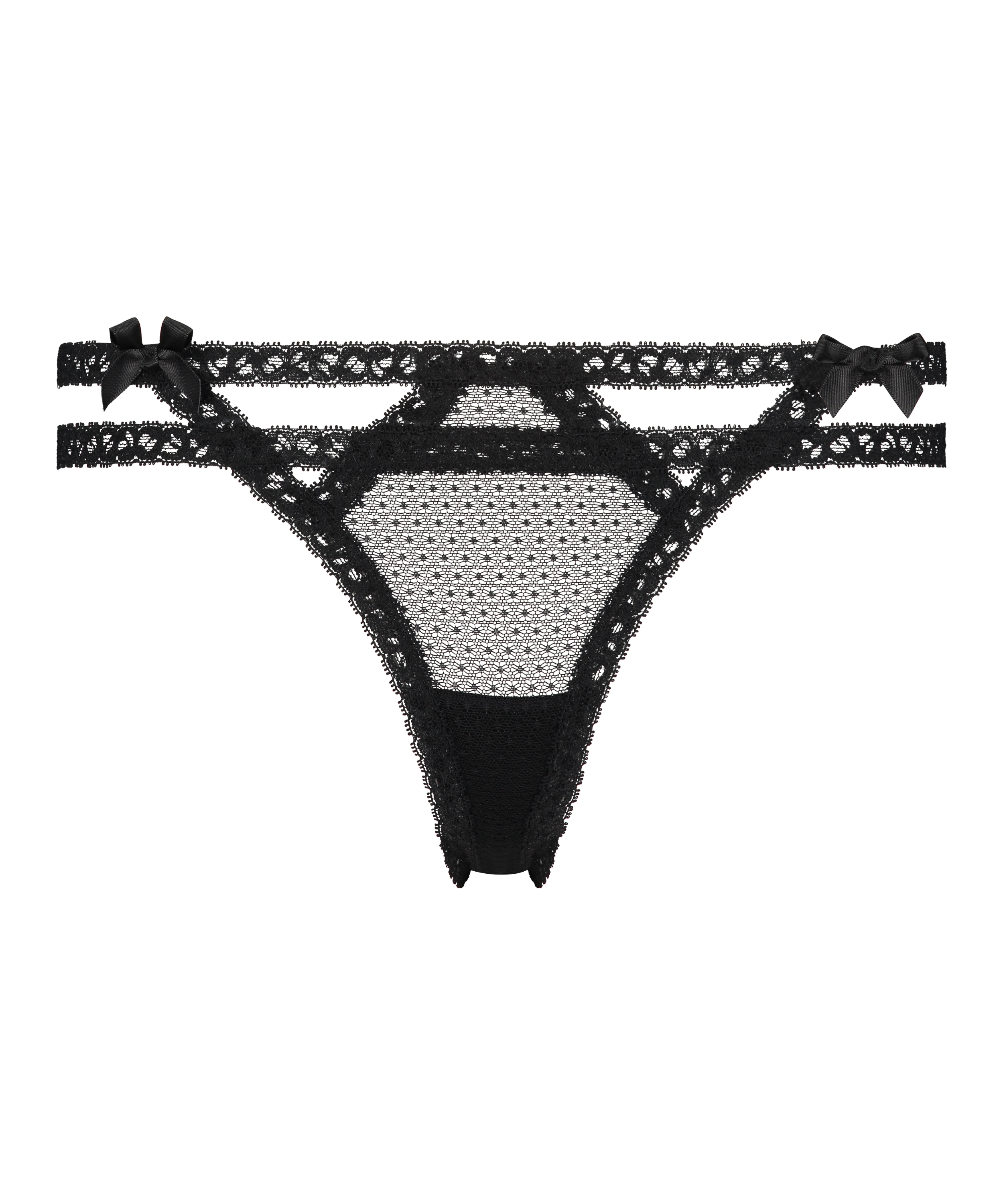 Stropper er tidens trend. Denne g-streng i skønt, blødt stof sidder dejligt behageligt! Den er dekoreret med søde sløjfer og beklædt med halvtransparent blondestof. Den er bare sød!