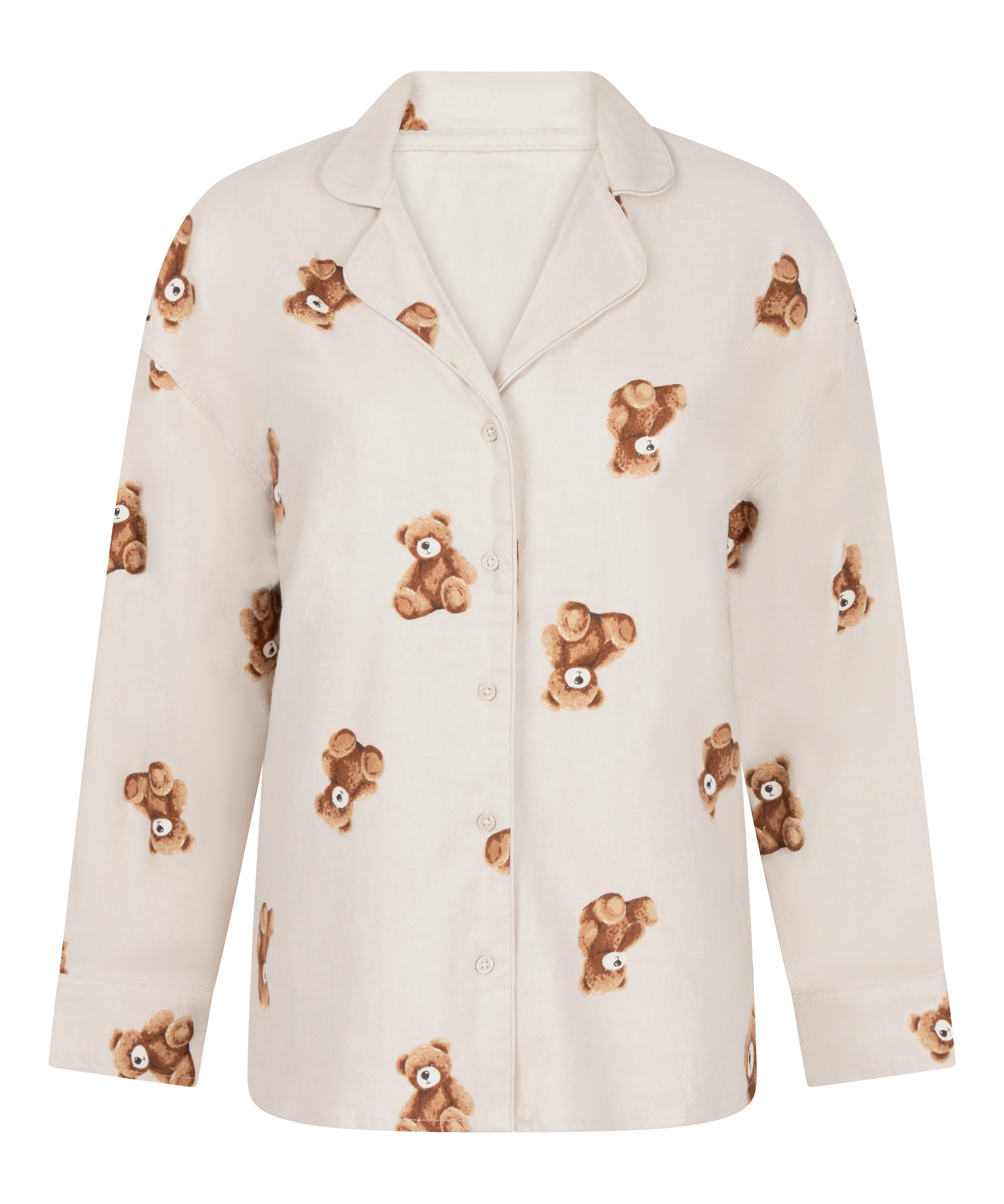 Pak dig ind i varme med denne charmerende pyjamasjakke – skabt til både hyggelige aftener og dovne morgener. Den er lavet af blødt flanelstof og har en klassisk krave, lange ærmer og knapper hele vejen ned foran, hvilket giver et tidløst look. Det flotte bjørnemønster tilføjer et sjovt og hyggeligt præg, som du vil elske at have på. Den er perfekt til køligere aftener. Kombiner den med den matchende underdel for et fuldendt look.