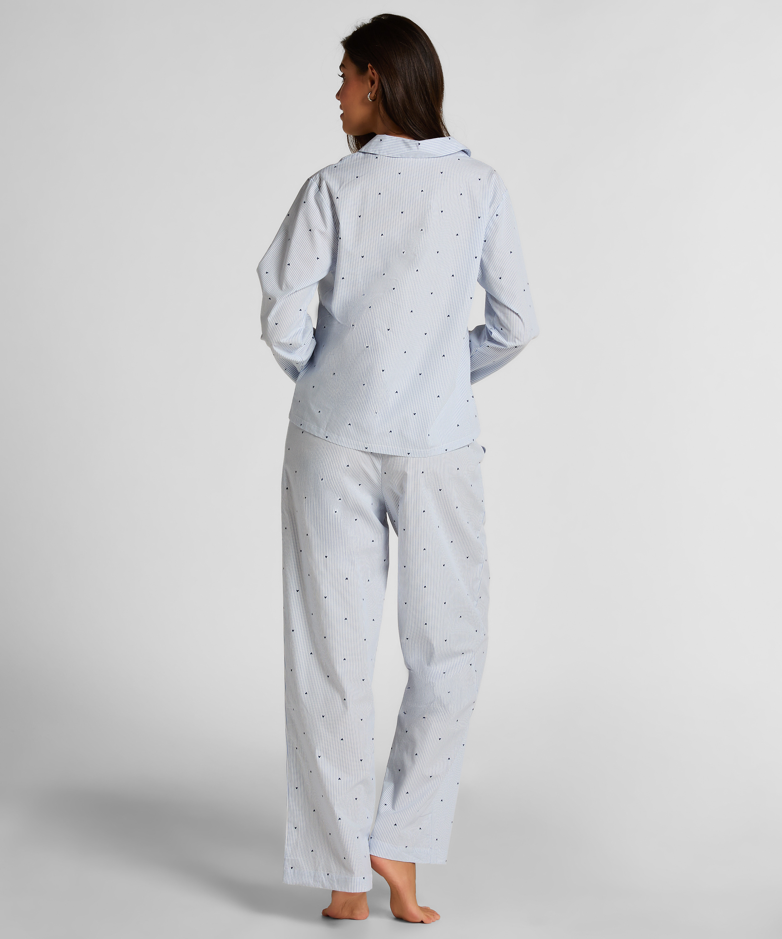 Vores pyjamasjakke i bomuld er luksus i den behagelige ende. Disse jakker er lavet af blødt, åndbart bomuld og tilbyder den perfekte kombination af komfort og stil. Designet med knapper, der går hele vejen ned foran, giver et elegant og tidløst look og gør den nem at få af og på. Den klassiske krave tilføjer et raffineret touch og løfter det samlede design.