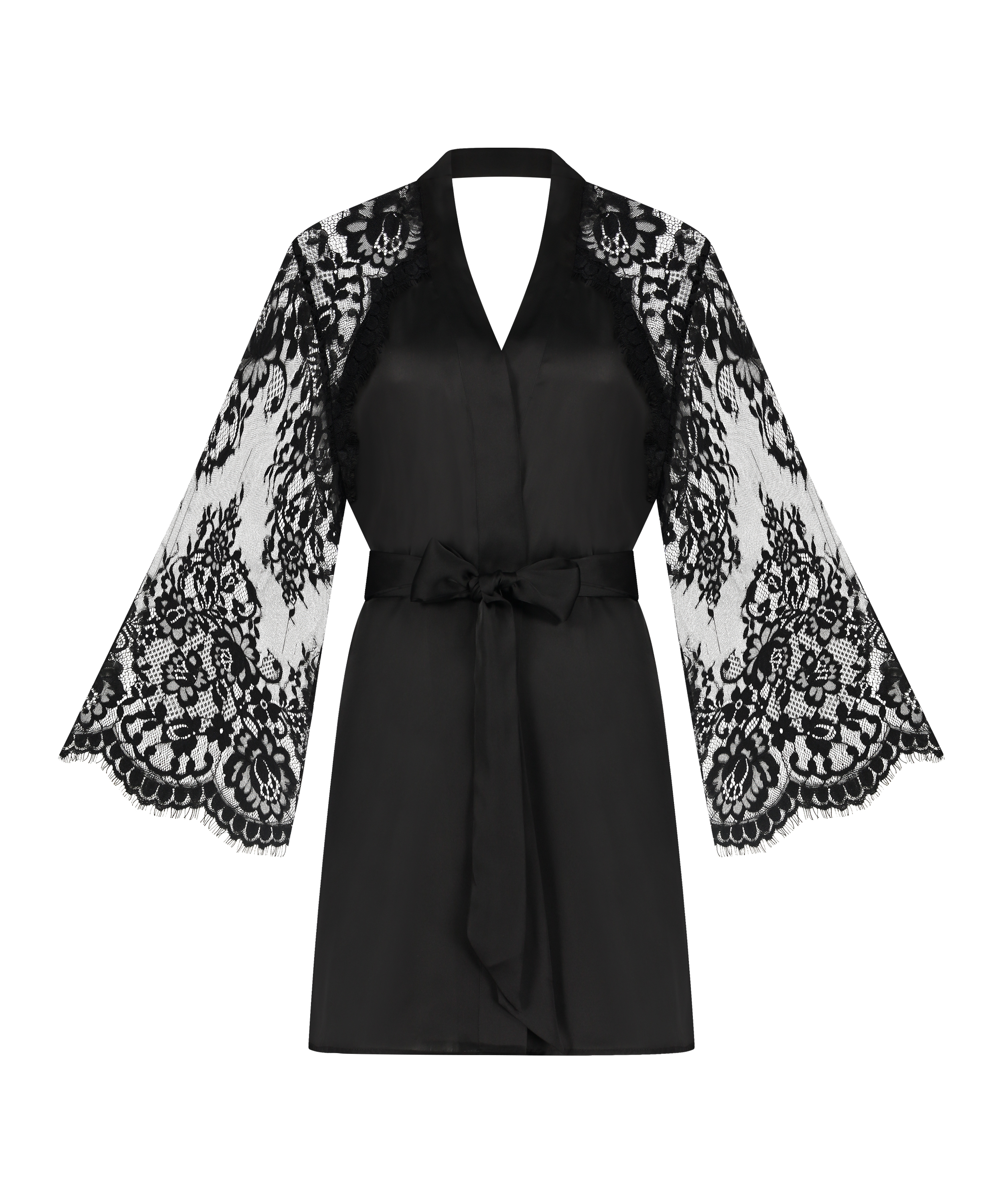 Kimono, som ser ud og føles som satin. De vide ærmer med blonder gør dit outfit supersexet. Den må ikke mangle i din garderobe! Kombiner med en flot natkjole for et fuldendt look. En artikel fra Private-kollektionen.