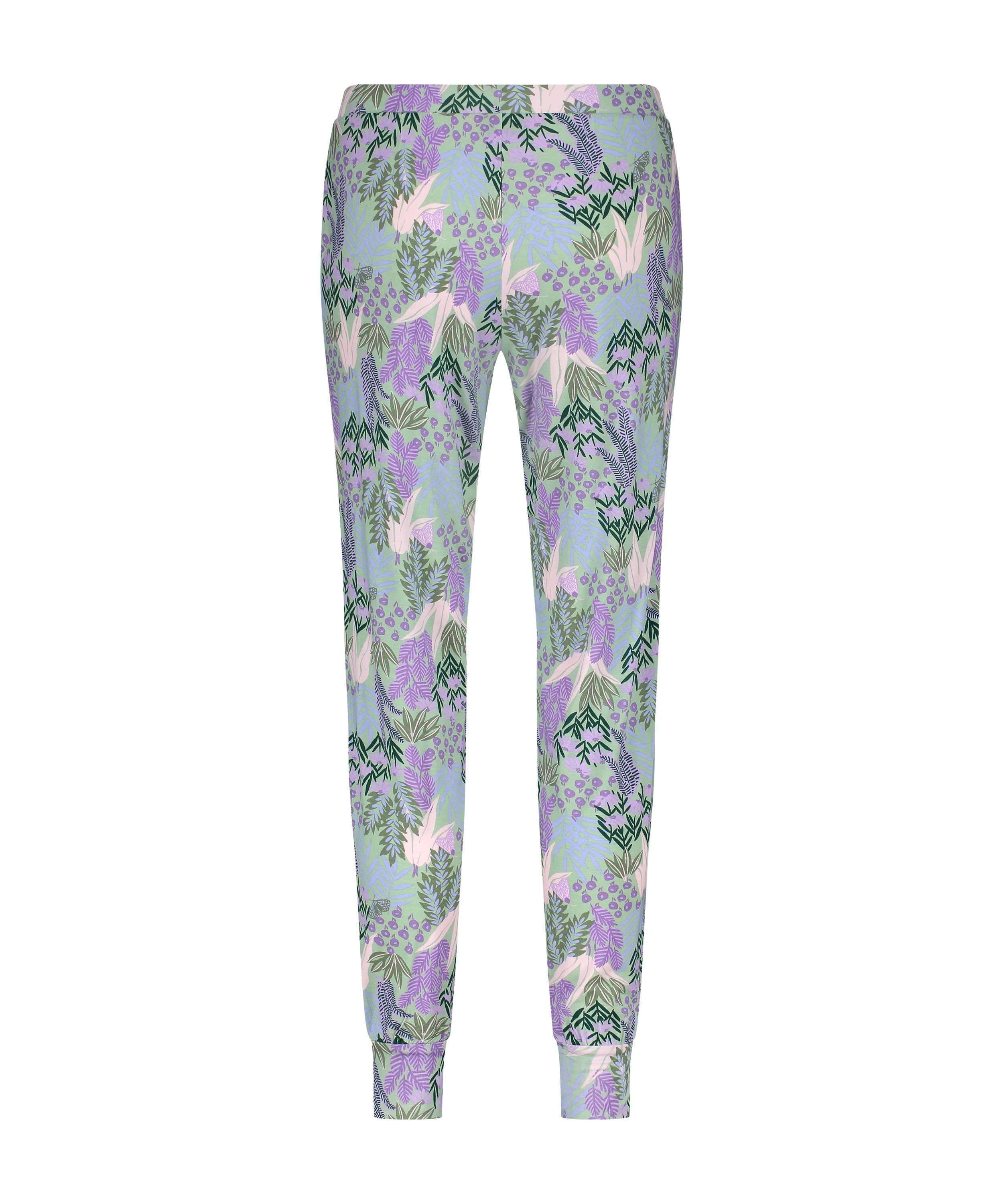 Pyjamasbukser i blødt og fleksibelt stof. Bukserne har elastik i taljen og lommer, og sidder tæt omkring anklerne.