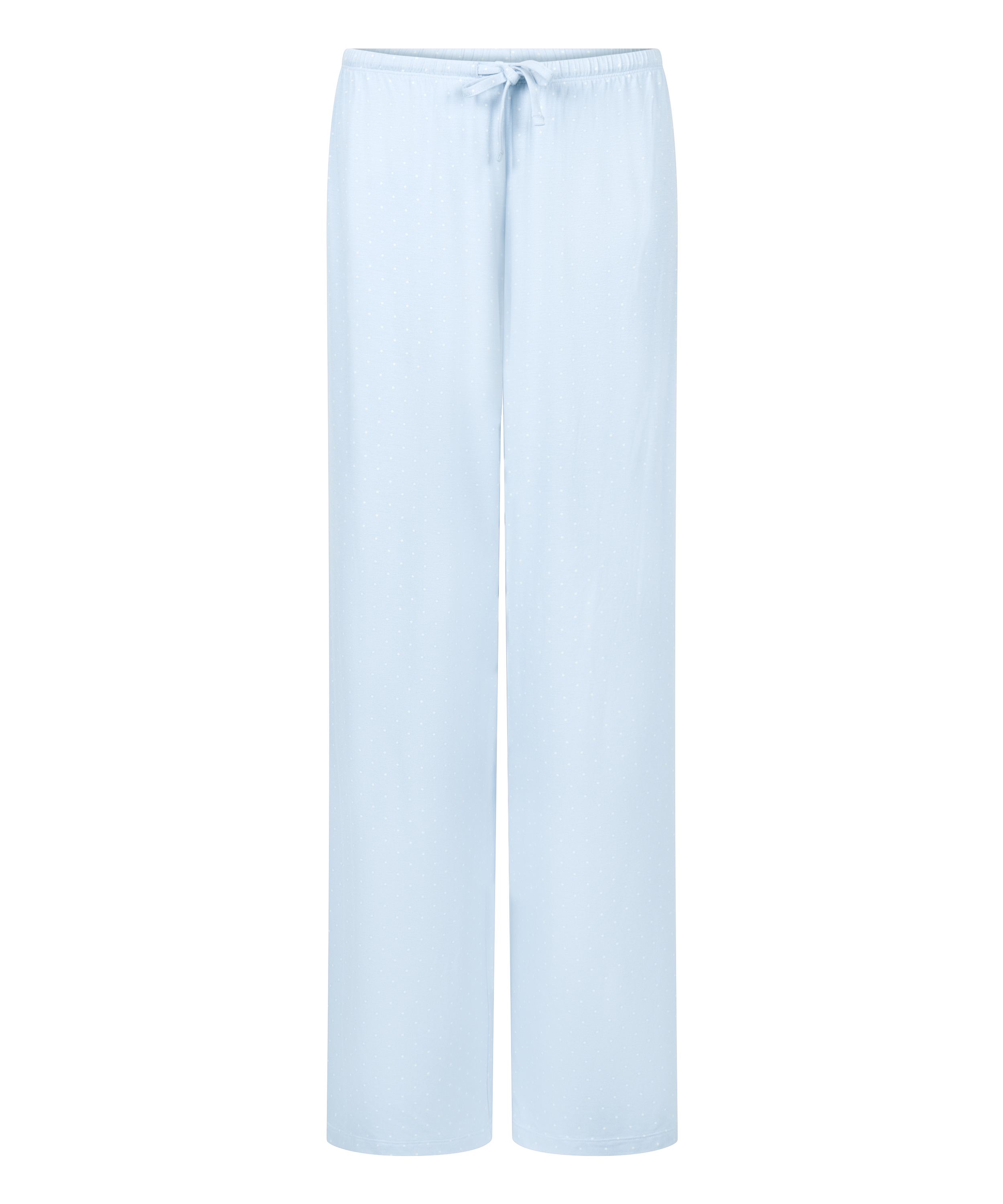 Slap af i komfort med vores jersey-pyjamasbukser, der er lavet af blødt stof, til en afslappet dag eller nat. Den elastiske linning giver en fleksibel pasform, mens snørelukningen tilføjer et praktisk og stilfuldt touch. Perfekt til afslapning, søvn eller rolige morgener. Fuldend looket med din yndlingstop.