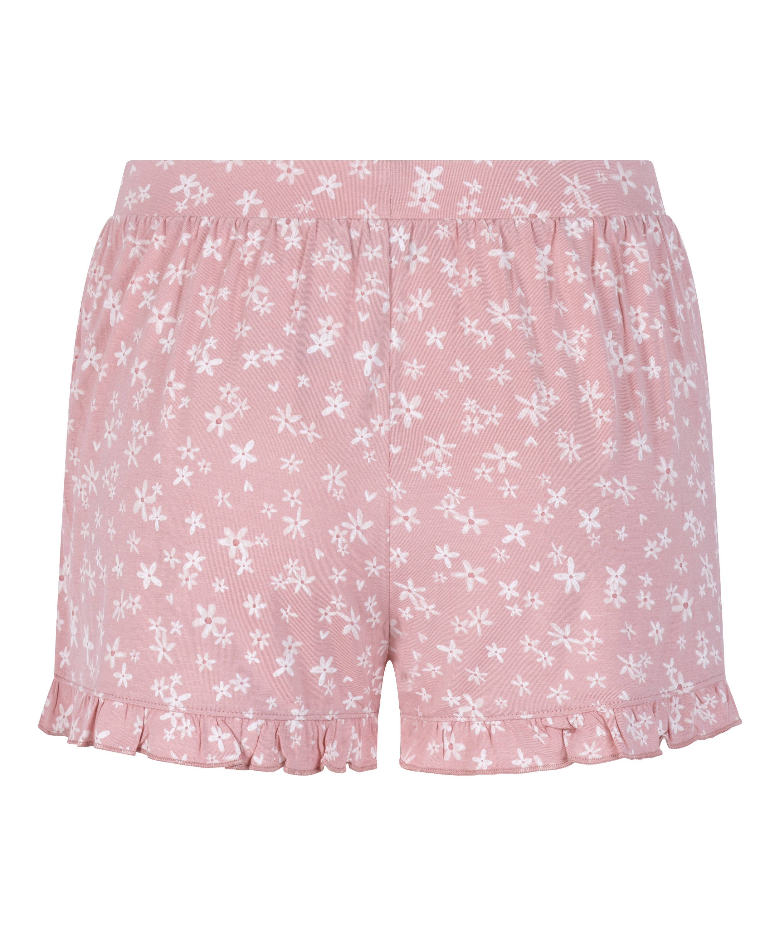Hvor søde er disse pyjamasshorts? Den justerbare linning med det elegante silkebånd, danner signatursløjfen og sikrer perfekt pasform. Fremstillet af blødt stof med delikate flæsedetaljer nederst, de er både stilfulde og behagelige!
