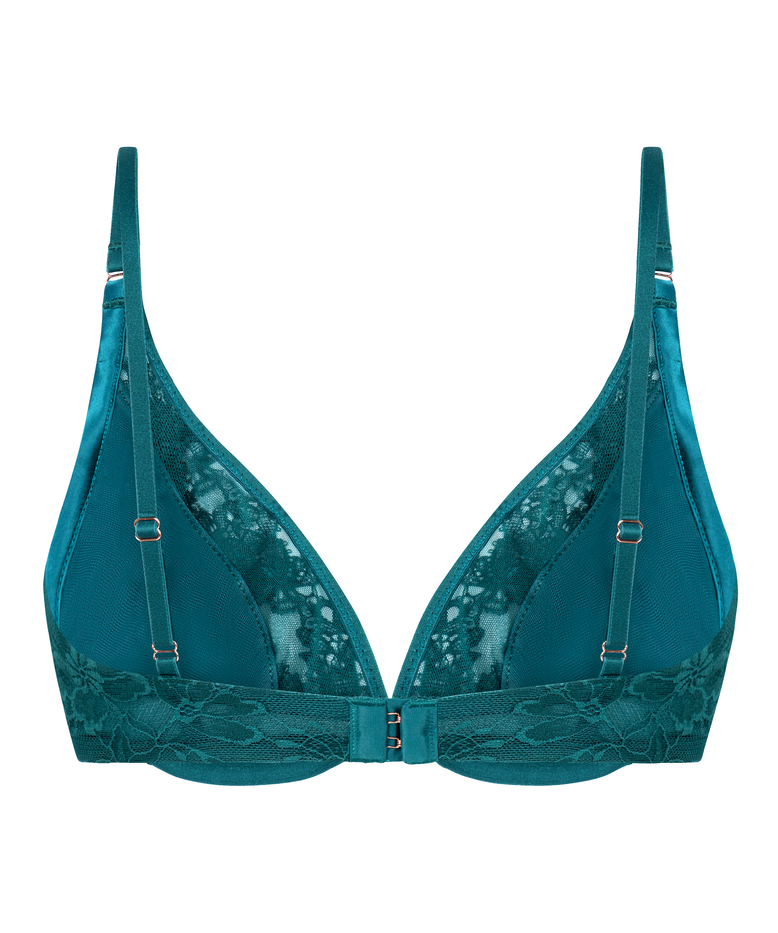 Delikat, dristig og smukt detaljeret – denne bh med dyb udskæring uden vattering er fremstillet af blød blomsterblonde for en romantisk og næsten ikke mærkbar fornemmelse. Den dybe halsudskæring fremhæver din naturlige form, mens hægtelukningen bagpå sikrer en sikker og behagelig pasform. En diskret smykkedetalje foran tilføjer et strejf af glimmer, hvilket gør den til det perfekte smykke, når du ønsker at føle dig ubesværet elegant.