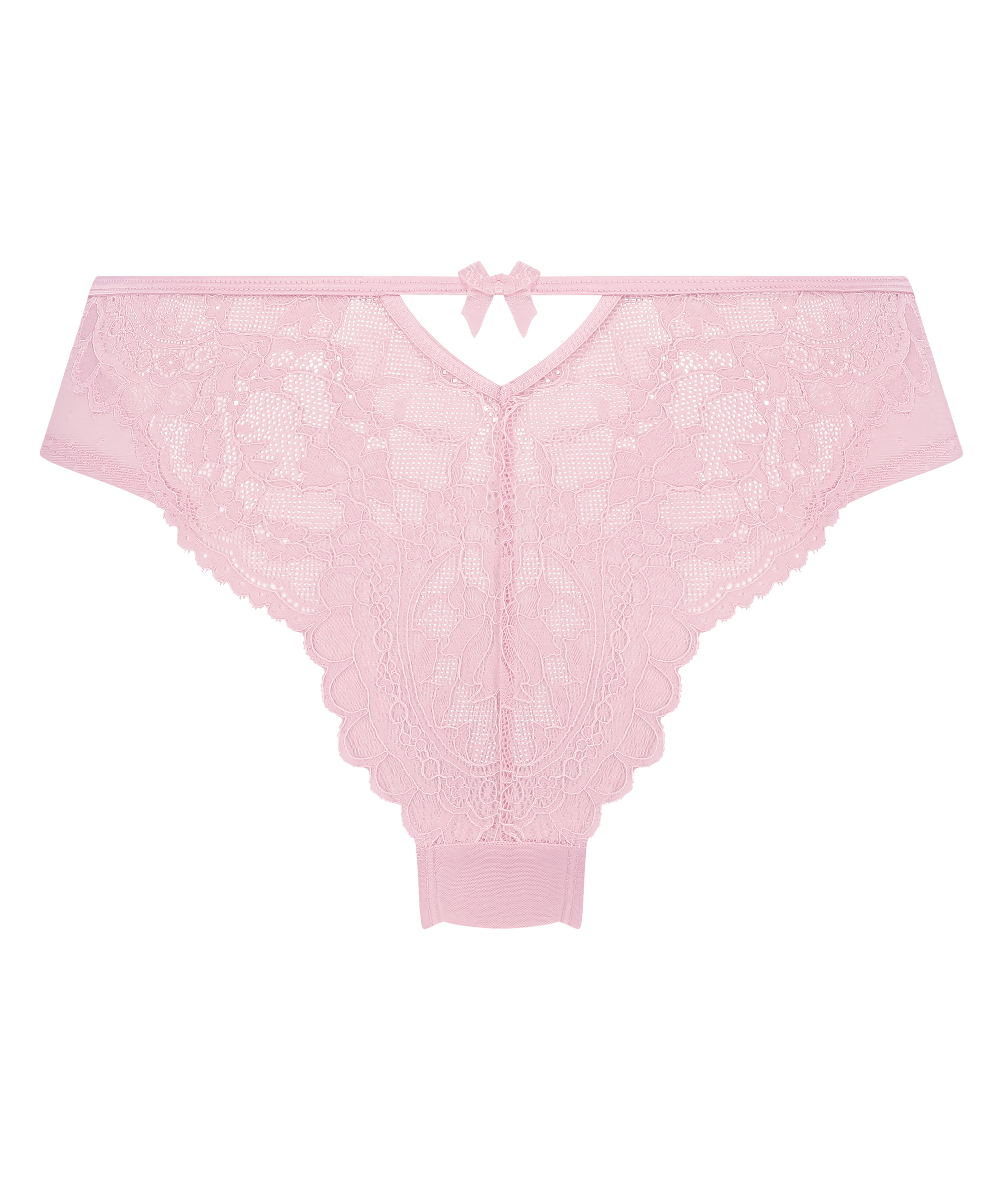 Omfavn elegance med denne smukke brasilianske trusse. Blondestoffet vikler sig rundt om kroppen og giver et delikat look. Designet til en flatterende pasform, den bløde blonde fremhæver dine kurver og giver komfort og stil.
