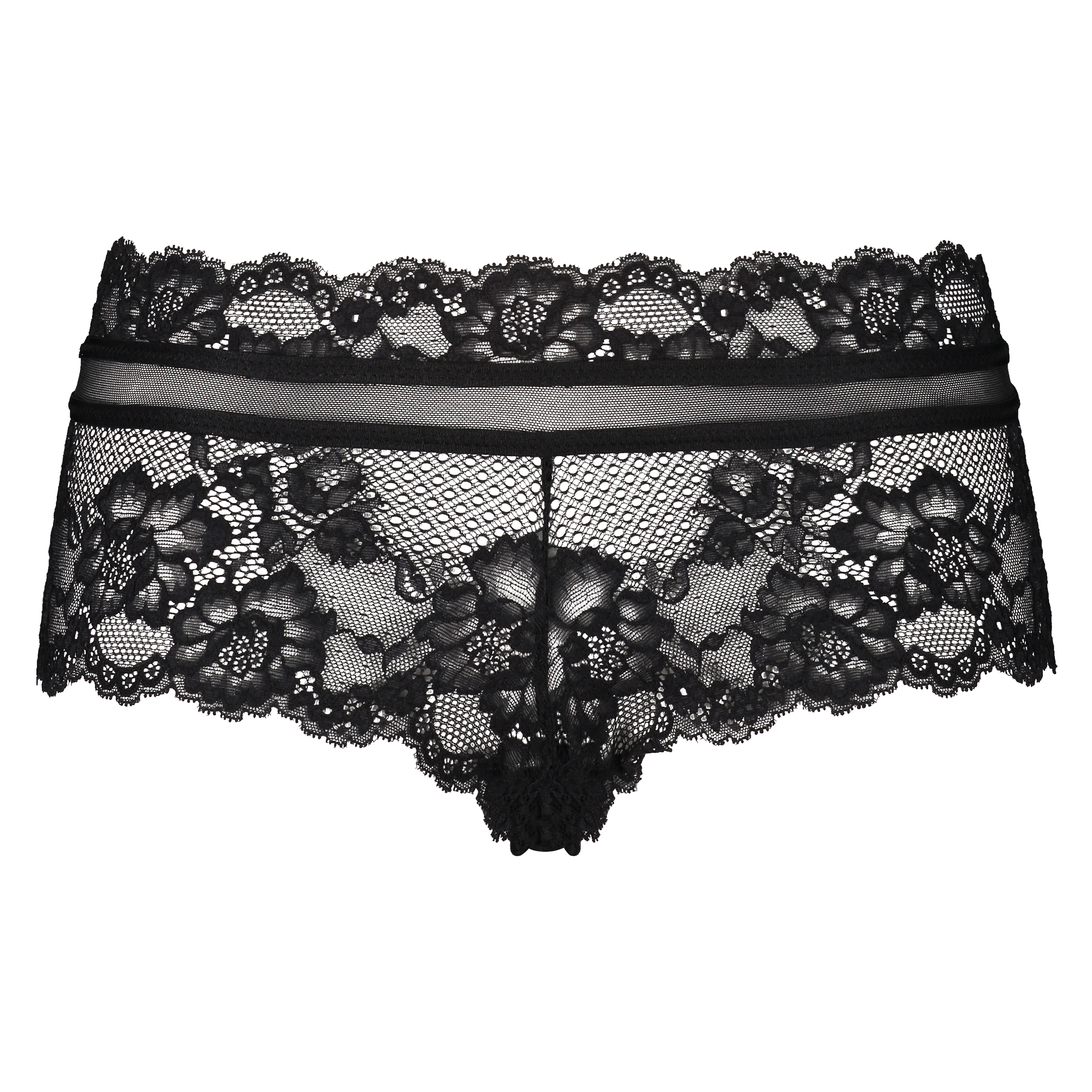 Føl dig sexet med disse boxershorts! Boxershortsene er hovedsageligt lavet af blonder og har en linning i mesh. Kombiner dem med en matchende bh for at fuldende sættet.