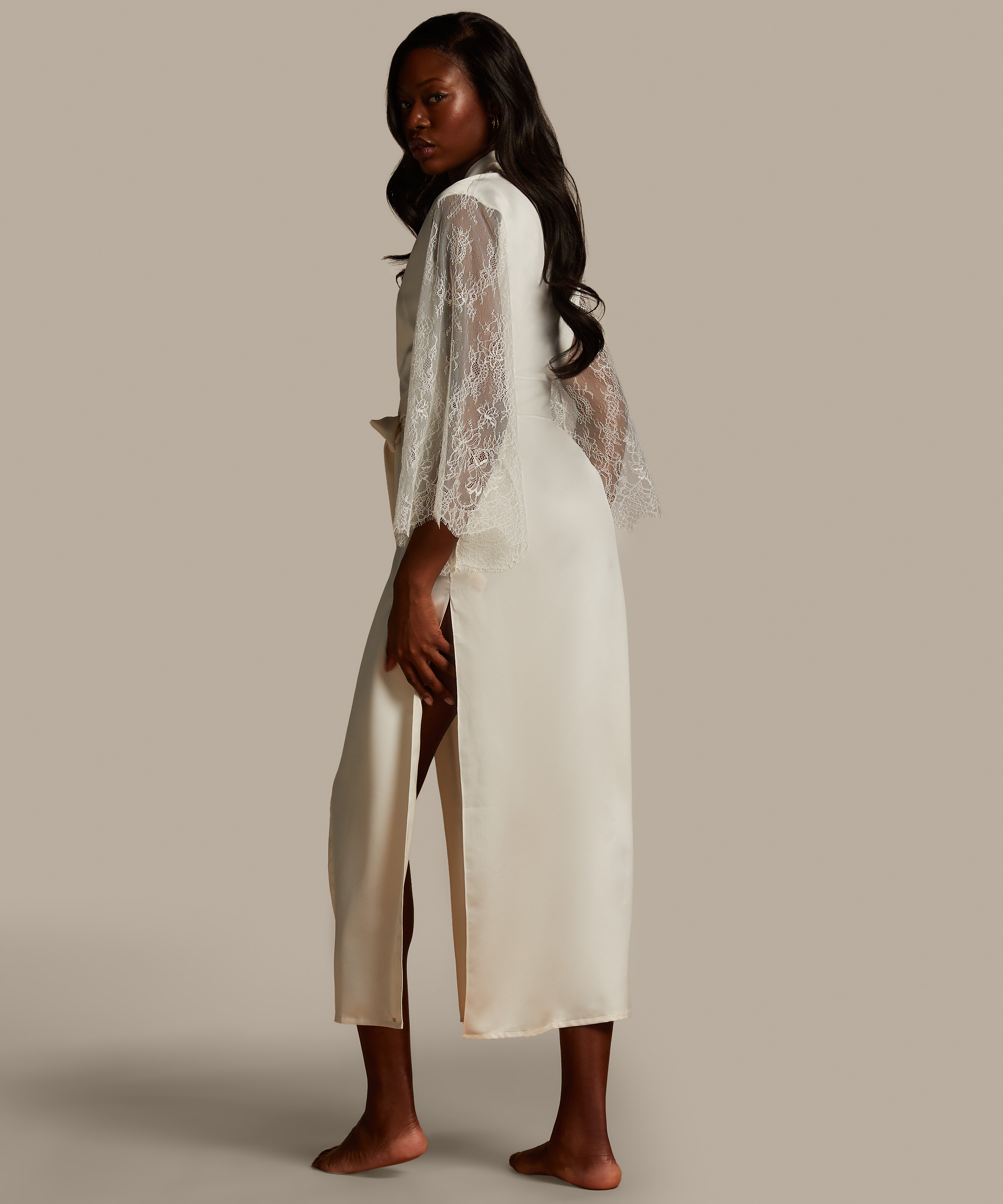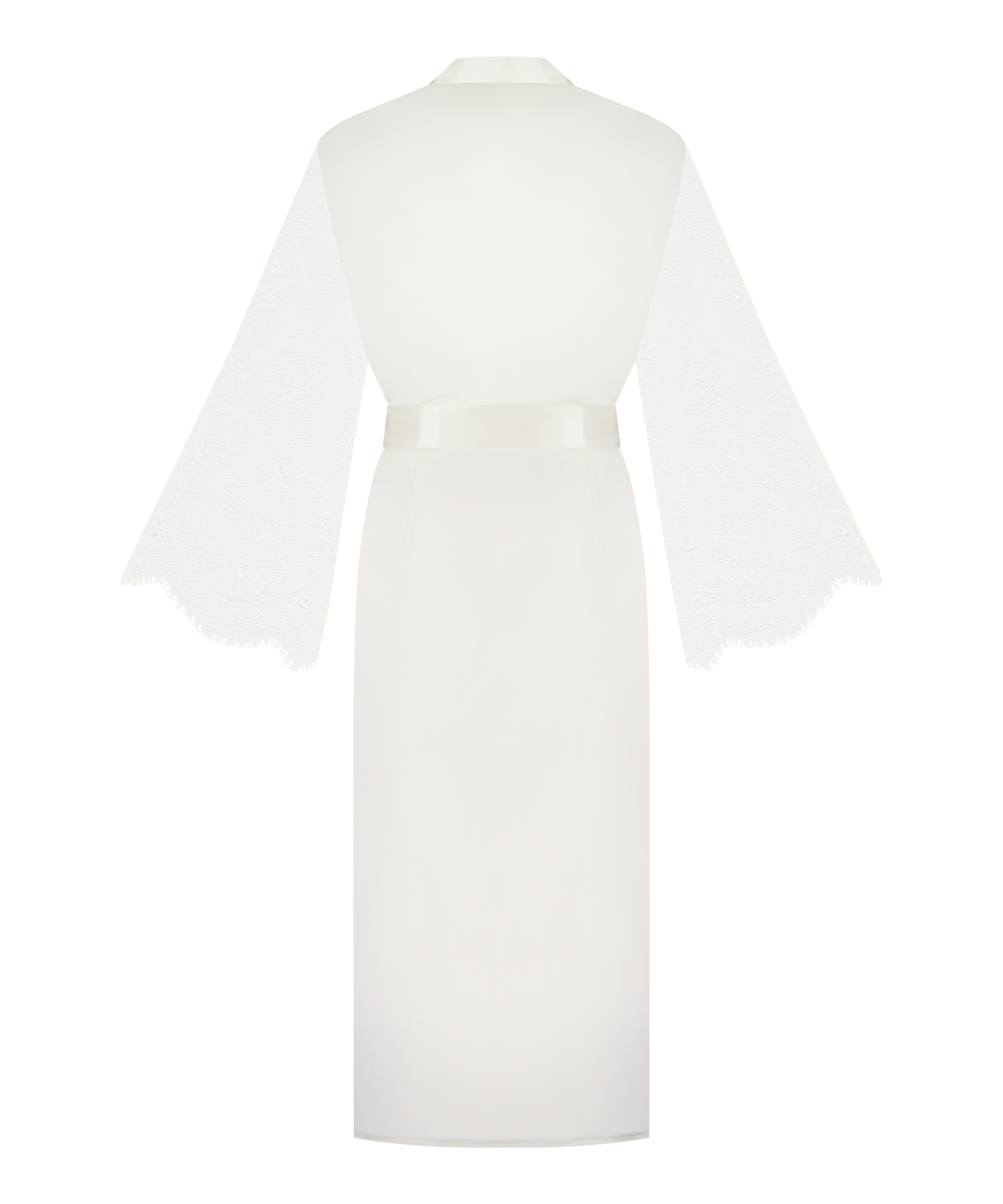 Gå ikke glip af denne elegante kimono! Den har masser af romantiske blonder og en rigtig bindelukning. Denne yndige kimono har brede ærmer og er lavet af satinmateriale, der giver den et luksuriøst look. Kombinér med matchende dele. En del af vores Noir kollektion.