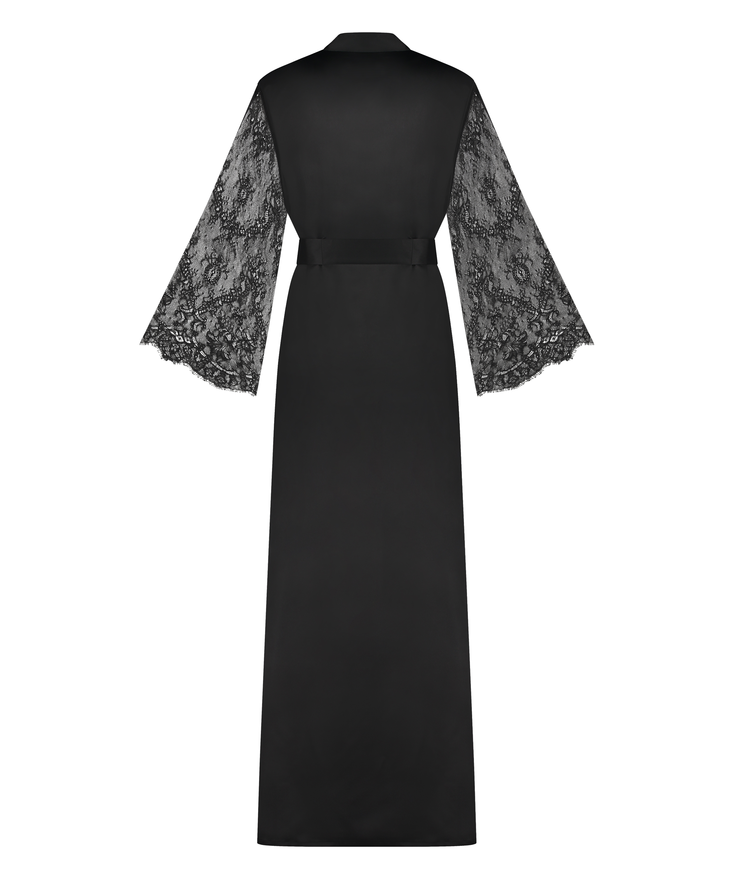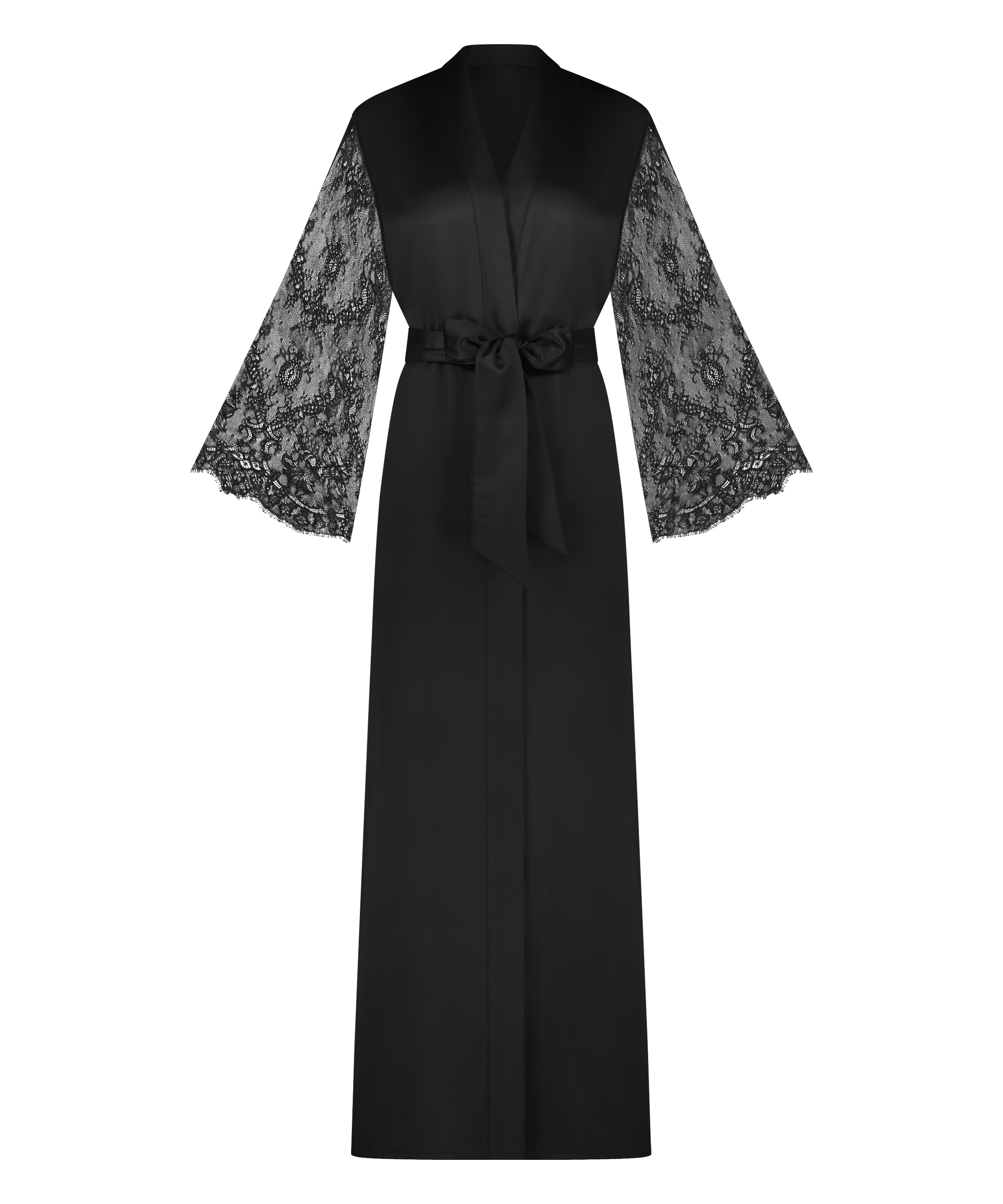Gå ikke glip af denne elegante kimono! Den har masser af romantiske blonder og en rigtig bindelukning. Denne yndige kimono har brede ærmer og er lavet af satinmateriale, der giver den et luksuriøst look. Kombinér med matchende dele. En del af vores Noir kollektion.