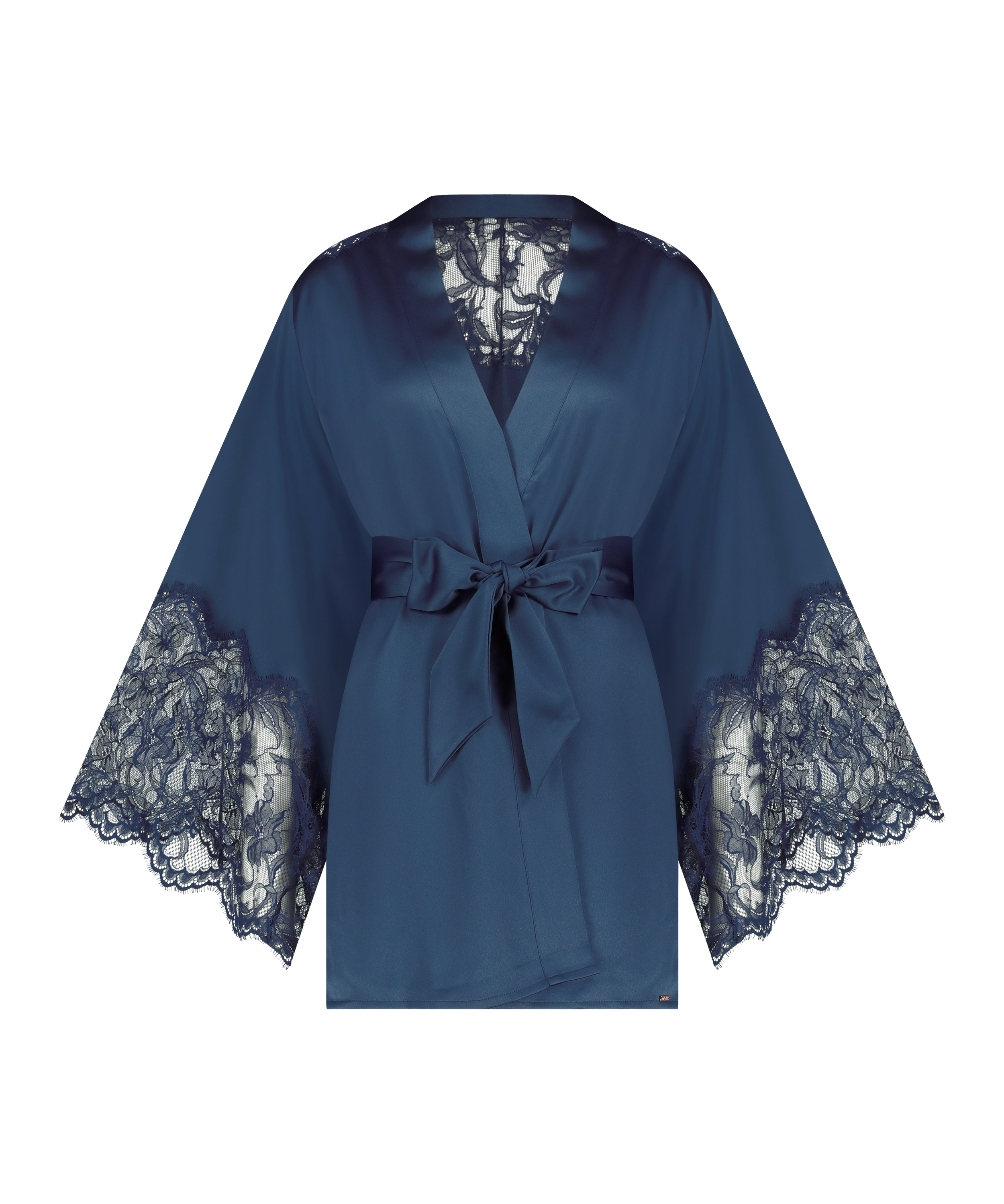 Tilføj elegance til din aftenrutine med denne smukke kimono. Med et gennemgående satinlook og romantiske blondedetaljer på håndled og ryg. Sæt den sammen med et sæt nattøj efter eget valg for at fuldende looket!