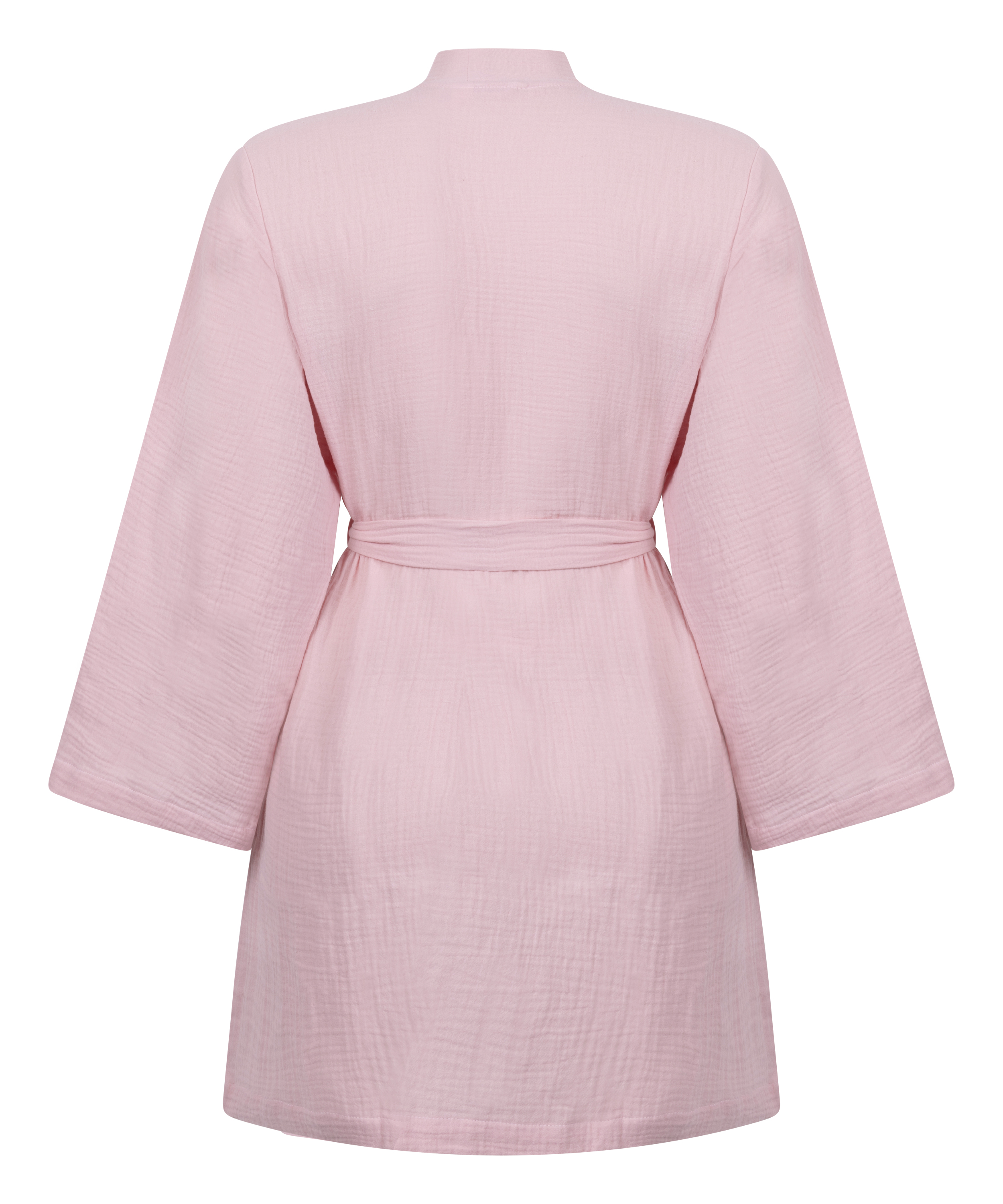 Afslapning med stil i denne (bade)kåbe i bomuldsmusselin. De lange, brede ærmer og det lette stof giver ultimativ komfort, mens det tynde bælte giver dig mulighed for at justere pasformen. Perfekt til afslappende stunder!