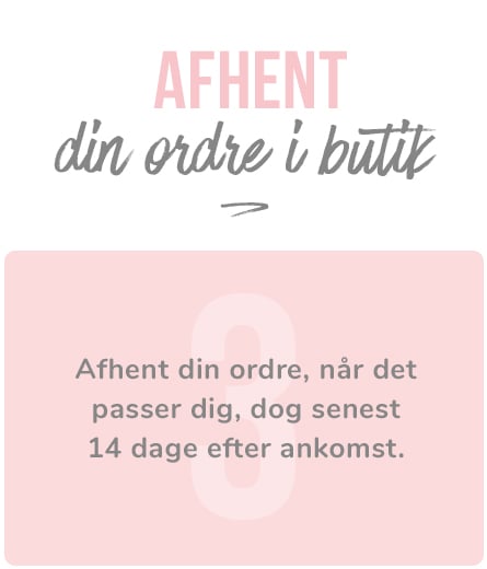 - Din ordre vil være klar til afhentning indenfor 3-4 hverdage og vil være i butikken i 14 dage.