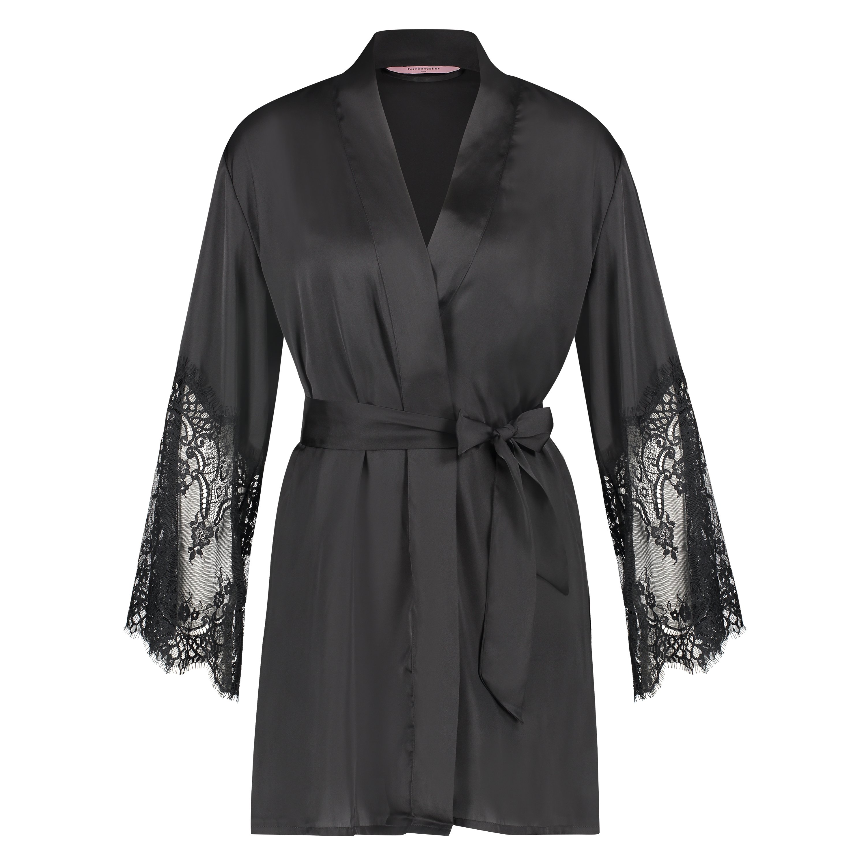 Lace Satin kimono - Sort