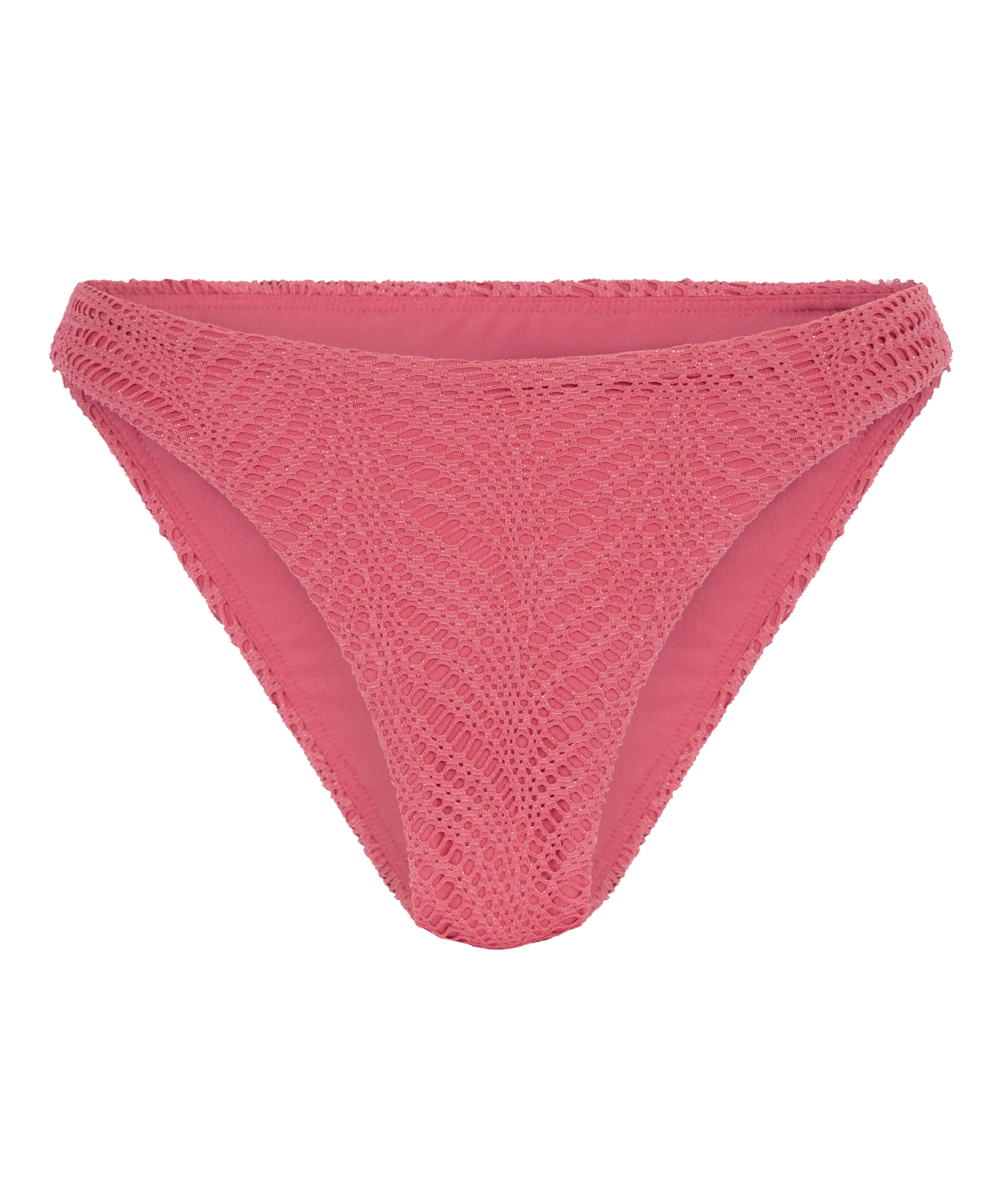 Løft din badetøjskollektion til nye højder med denne bikiniunderdel med høj benudskæring og hæklet finish. Det flatterende snit fremhæver din silhuet og har samtidig en behagelig pasform. Sættes sammen med en matchende badetop for et stilfuldt og selvsikkert strandlook!