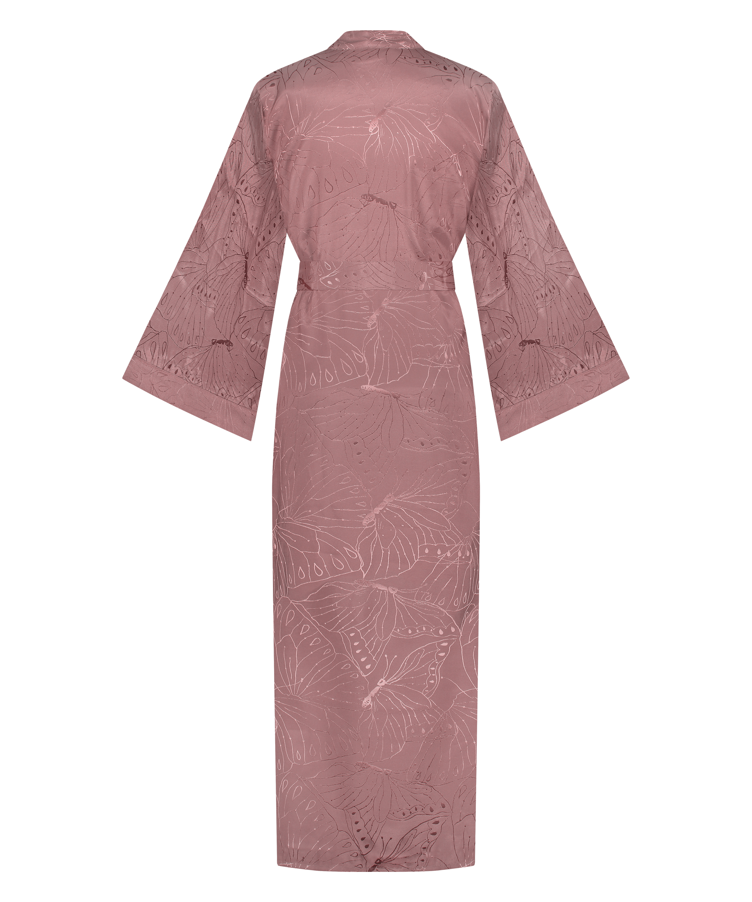 Denne smukke kimono er perfekt til at begynde din morgen- eller aftenrutine i! Den har smukke detaljer og kan bindes i taljen efter ønske. Brug den med dit foretrukne sæt undertøj.