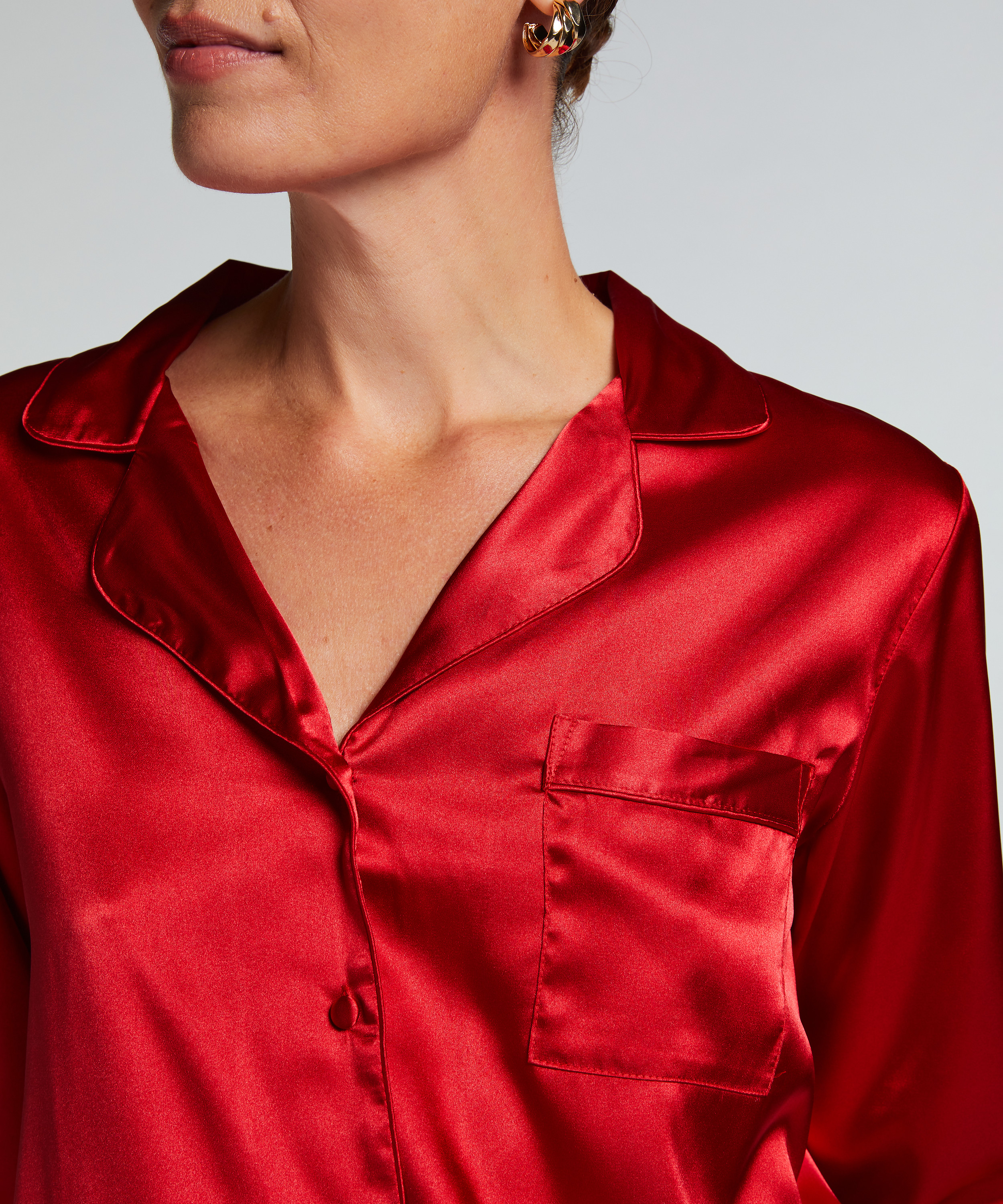 Se godt ud i denne jakke! Den er lavet af satin, har lange ærmer og v-udskæring. Sæt den sammen med matchende dele for at fuldende looket!