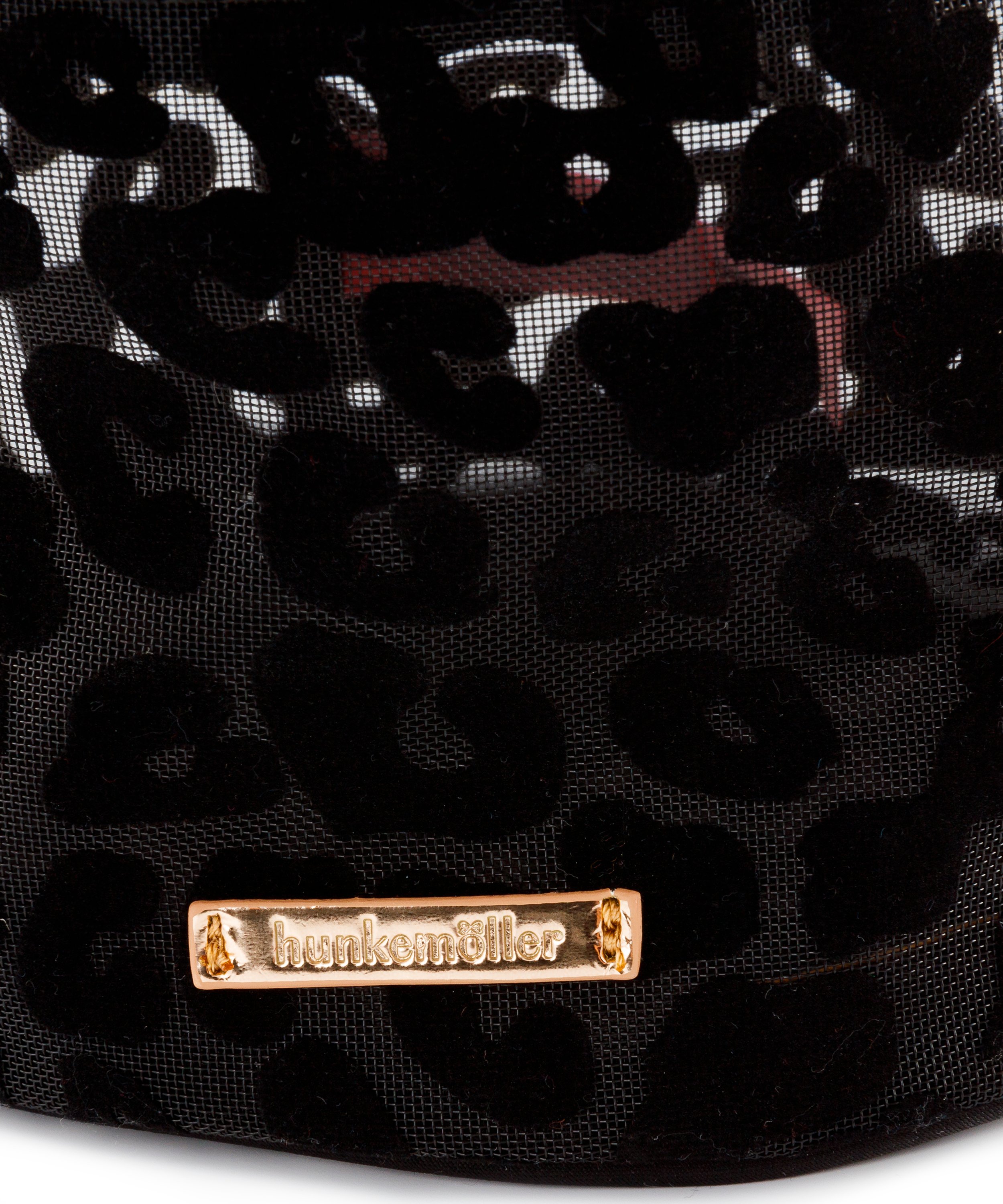 Tag din makeup med i denne trendy makeuptaske! Makeuptasken, som er i meshstof med leopardprint, er rummelig og stor. Tasken harlyserødegyldne detaljer!
