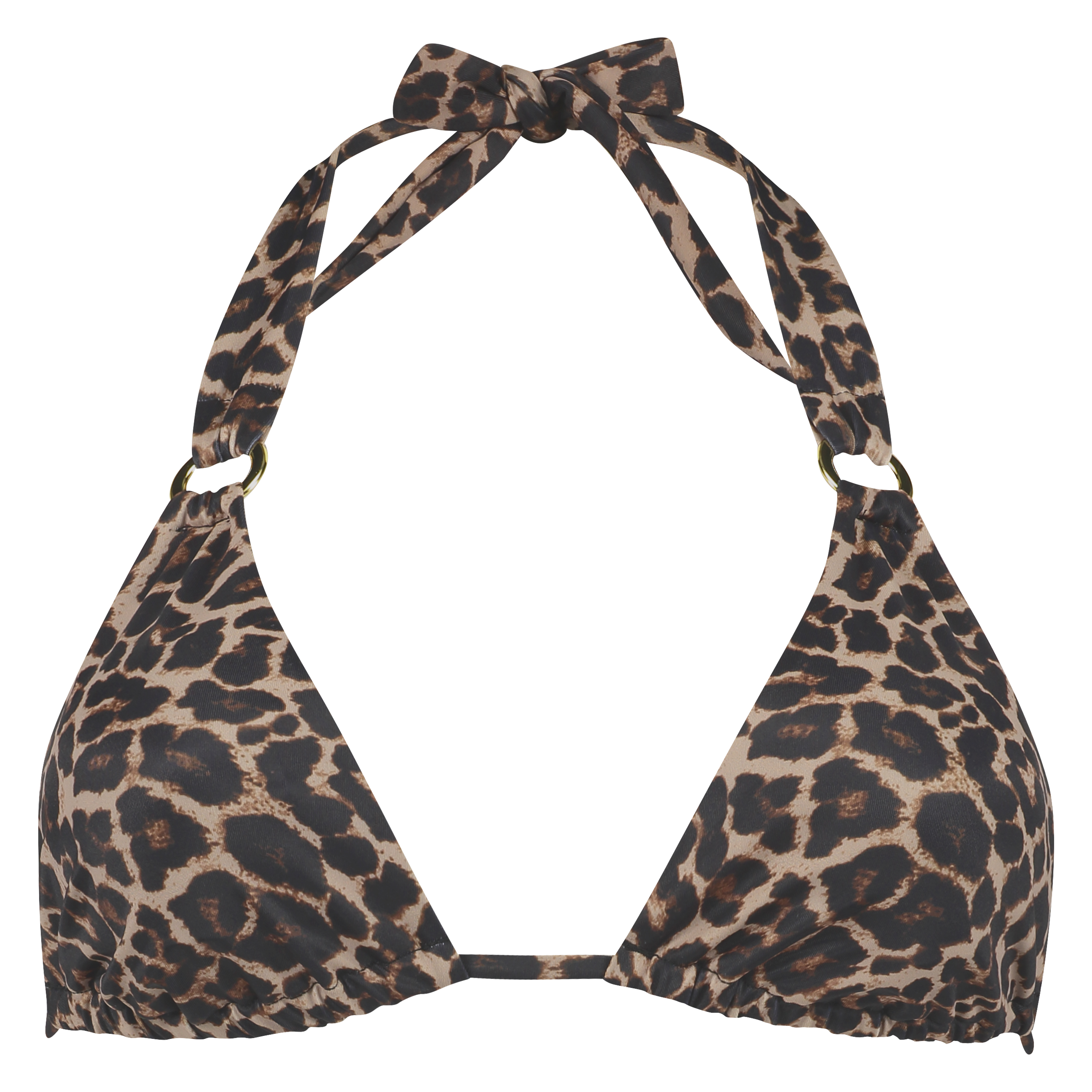 Vi elsker dyreprint! Denne bikinitop er den perfekte tilføjelse til din samling. Detaljen med ringen over skålene giver prikken over i'et. Toppen har fyld og ingen bøjle. Udtageligt fyld. Kombiner den med en af de matchende underdele for at fuldende sættet.