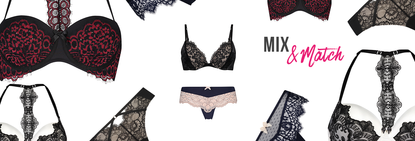 Mix & Match je lingeri! Lad os være ærlige, det føles rart at have en ;bh en trusse der passer sammen, men det er ikke altid lige nemt at matche dem. Er den matchende trusse til vask? Eller har du for mange forskellige typer lingerisæt? Måske du ønsker flere typer trusser til din favorit bh? Det hele bliver nemmere med vores mix & match værktøj. Mix & match alt lingeri fra Hunkemöller, og se de uendelig mange muligheder der findes. Går du efter en bh med vattering, bøjle, push-up eller måske du foretrækker en longline bh? Ønsker du at kombinere den med en brazilian, string eller højtaljet trusse? Valget er dit! God fornøjelse med at mixe & matche!