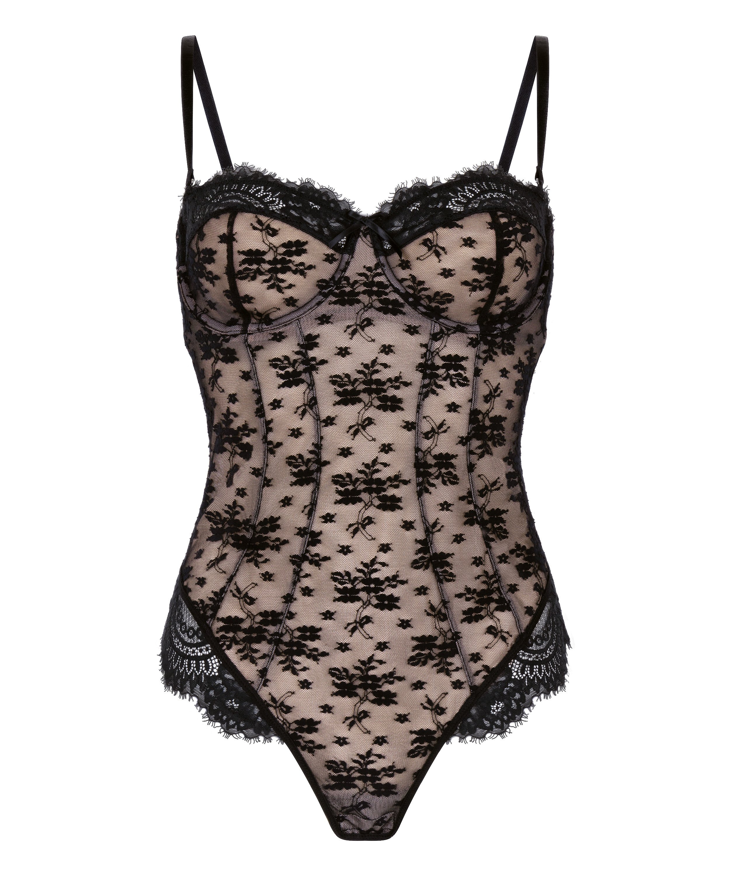 Romantisk og raffineret – denne body med blonde over det hele er designet til at fremhæve dine naturlige former med detaljer og gennemtænkt struktur. Den har bh-skåle uden vattering og bøjle, som giver let støtte og en blød silhuet. Blonden omslutter kroppen med elegance, mens de aftagelige skulderstropper giver dig mulighed for nemt at skifte mellem klassisk og stropløs styling.