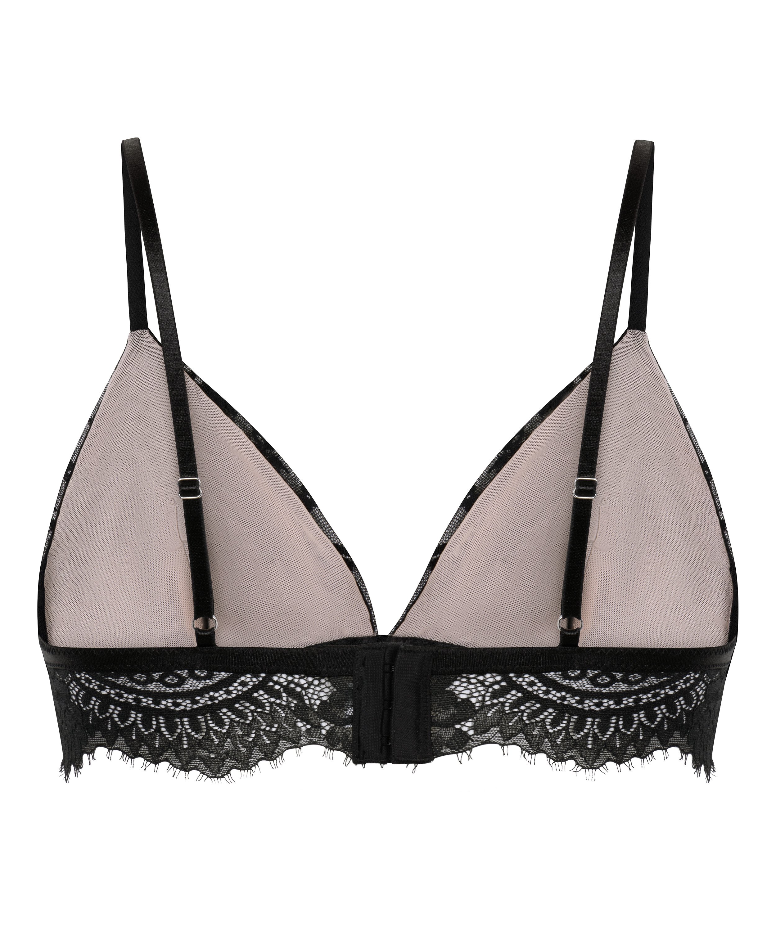 Nyd elegancen med vores trekantede bralette, der er designet til let støtte og med en smuk, naturlig pasform. Denne bralette er lavet af blonde og har en klassisk trekantssilhuet, der er flatterende uden vatterede skåle – perfekt til lag-på-lag eller afslapning. Med sin lette fornemmelse og romantiske detaljer er den det ideelle valg til hverdagskomfort med et strejf af charme. Fuldend looket med den matchende underdel.