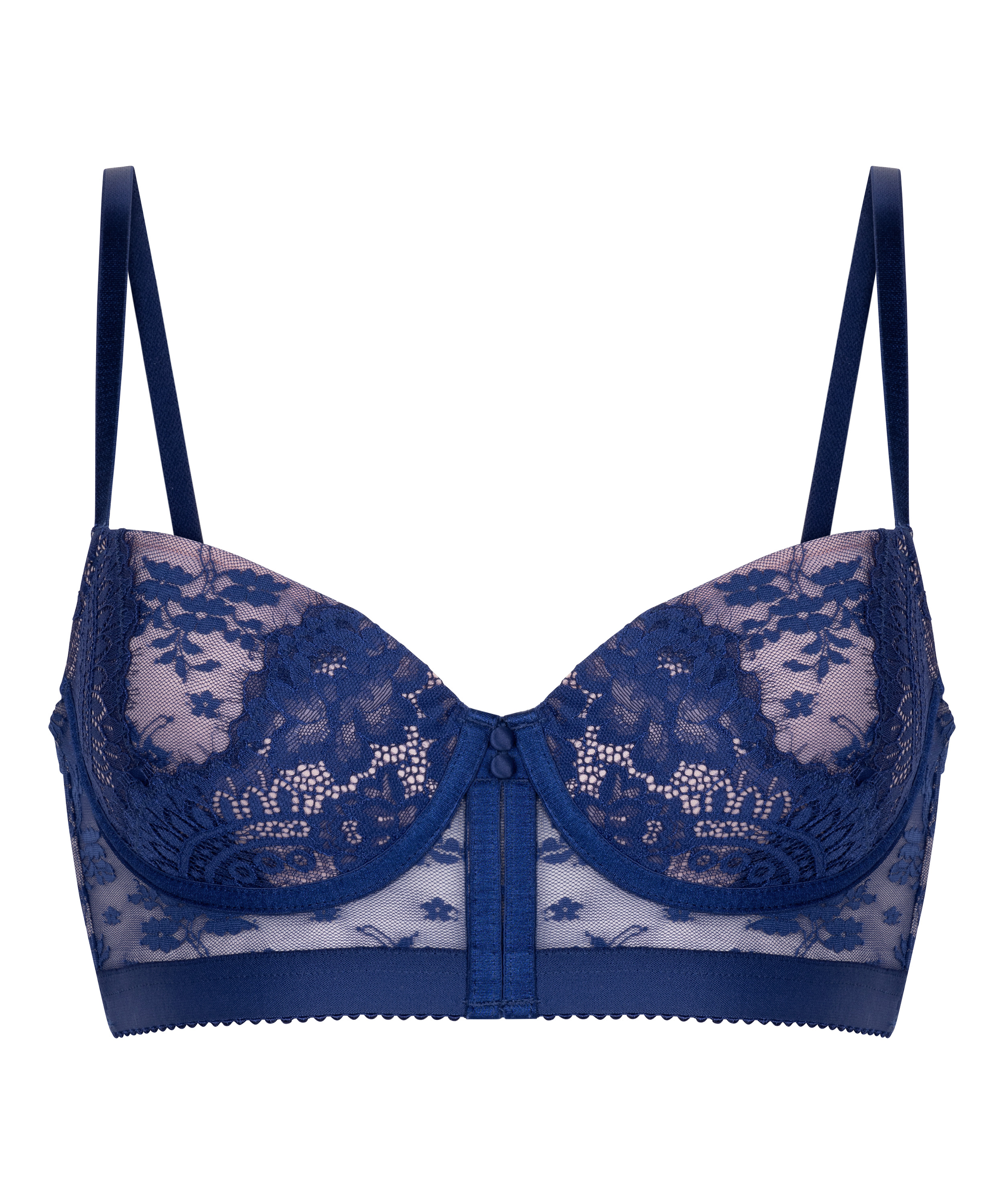 Skulptureret støtte møder tidløs charme i denne bh, der er designet til at fremhæve din silhuet med elegance og lethed. Den dybe udskæring fremhæver décolletéen, mens vatterede skåle med bøjle giver et blødt løft og formgivning. Den er lavet af delikat blonde og afsluttet med vintage-inspirerede knapper i midten, så denne model føjer et romantisk twist til din lingerisamling. Det lange design giver ekstra støtte og en flatterende pasform, hvilket gør den perfekt til både lag-på-lag og styling alene. Fuldend looket med den matchende underdel.