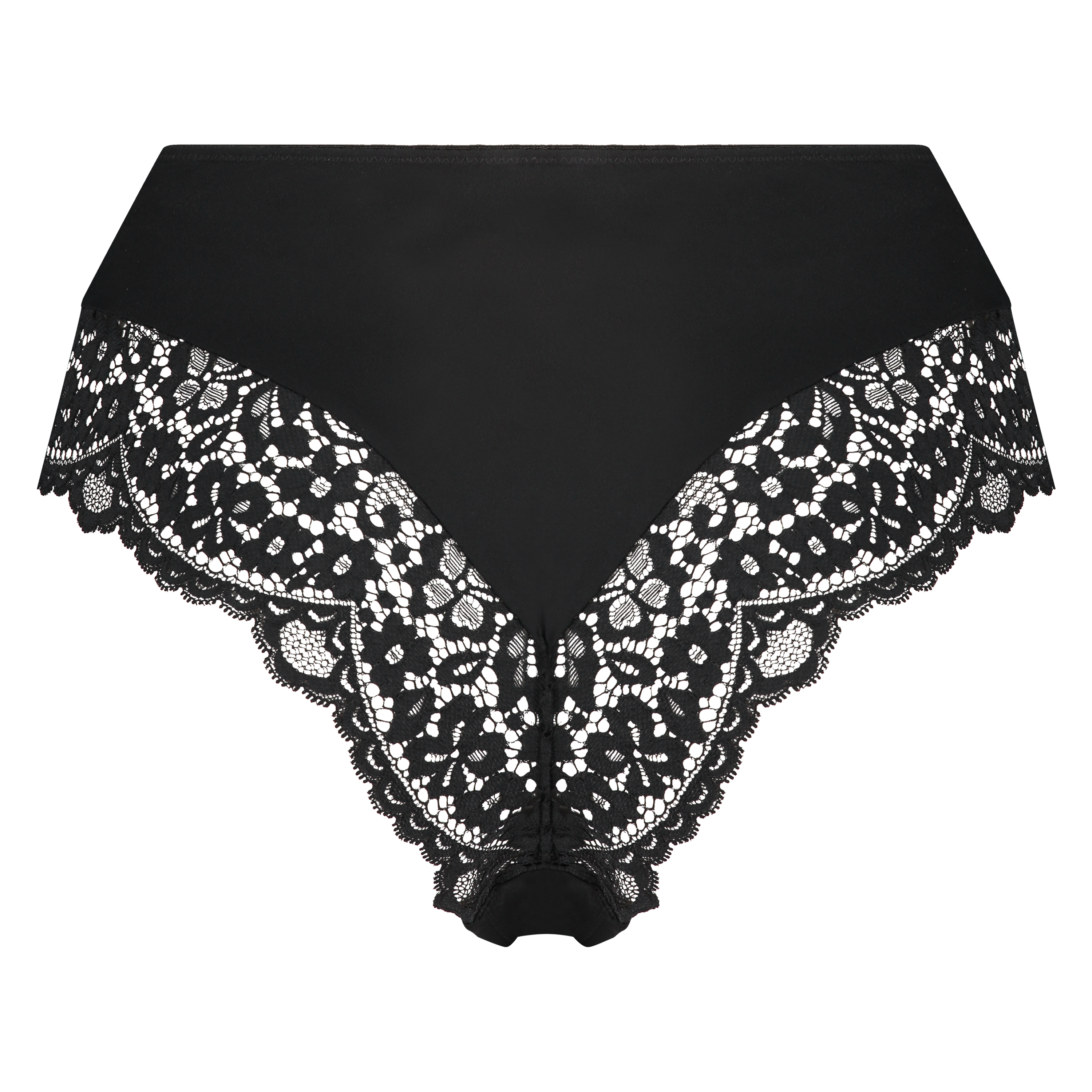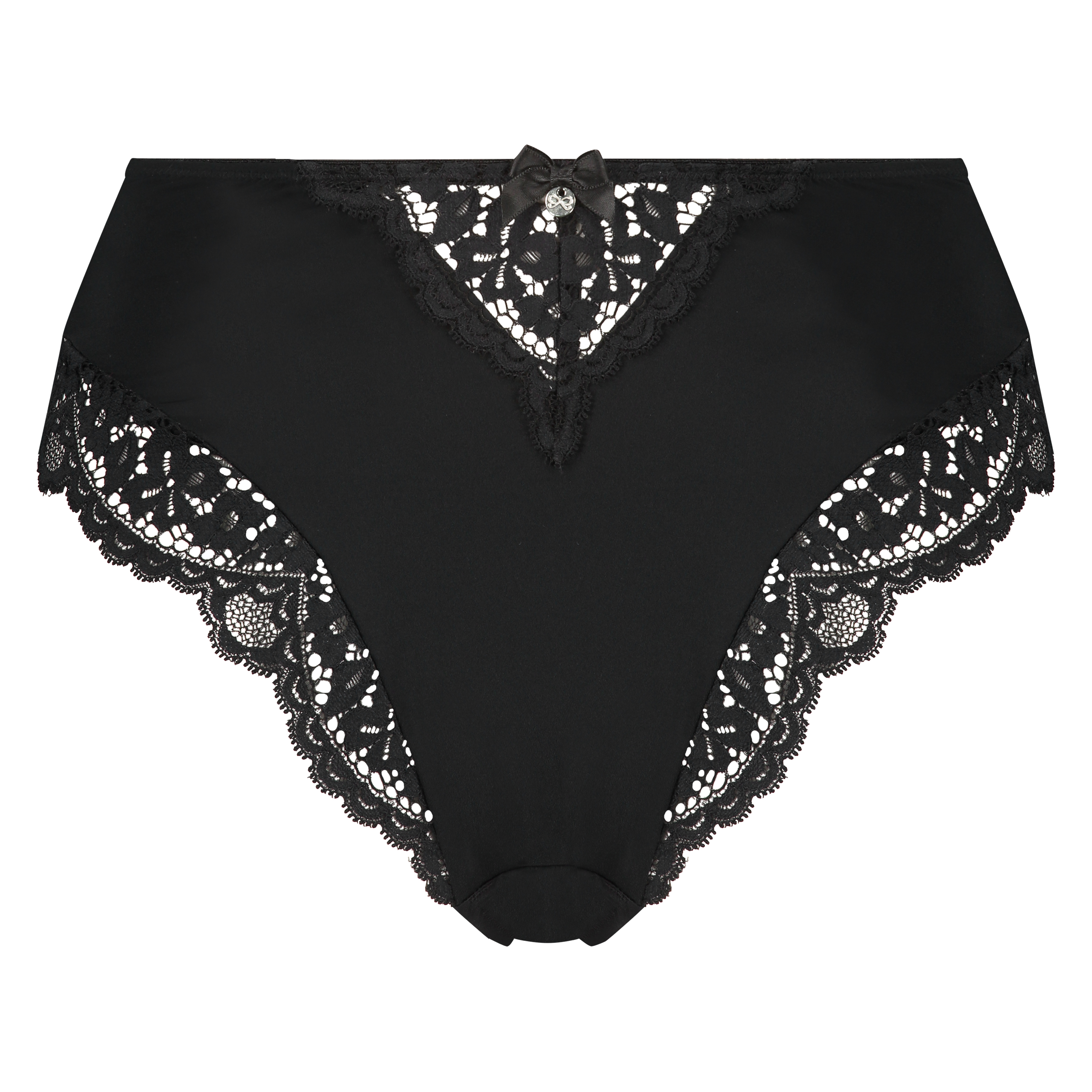 Denne brasilianske trusse er en showstopper! Den har høj talje og med højt snit i siden. Den er forsynet med mange blonder og en lille sløjfe foran. Kombineret med en matchende bralette får du det komplette look.