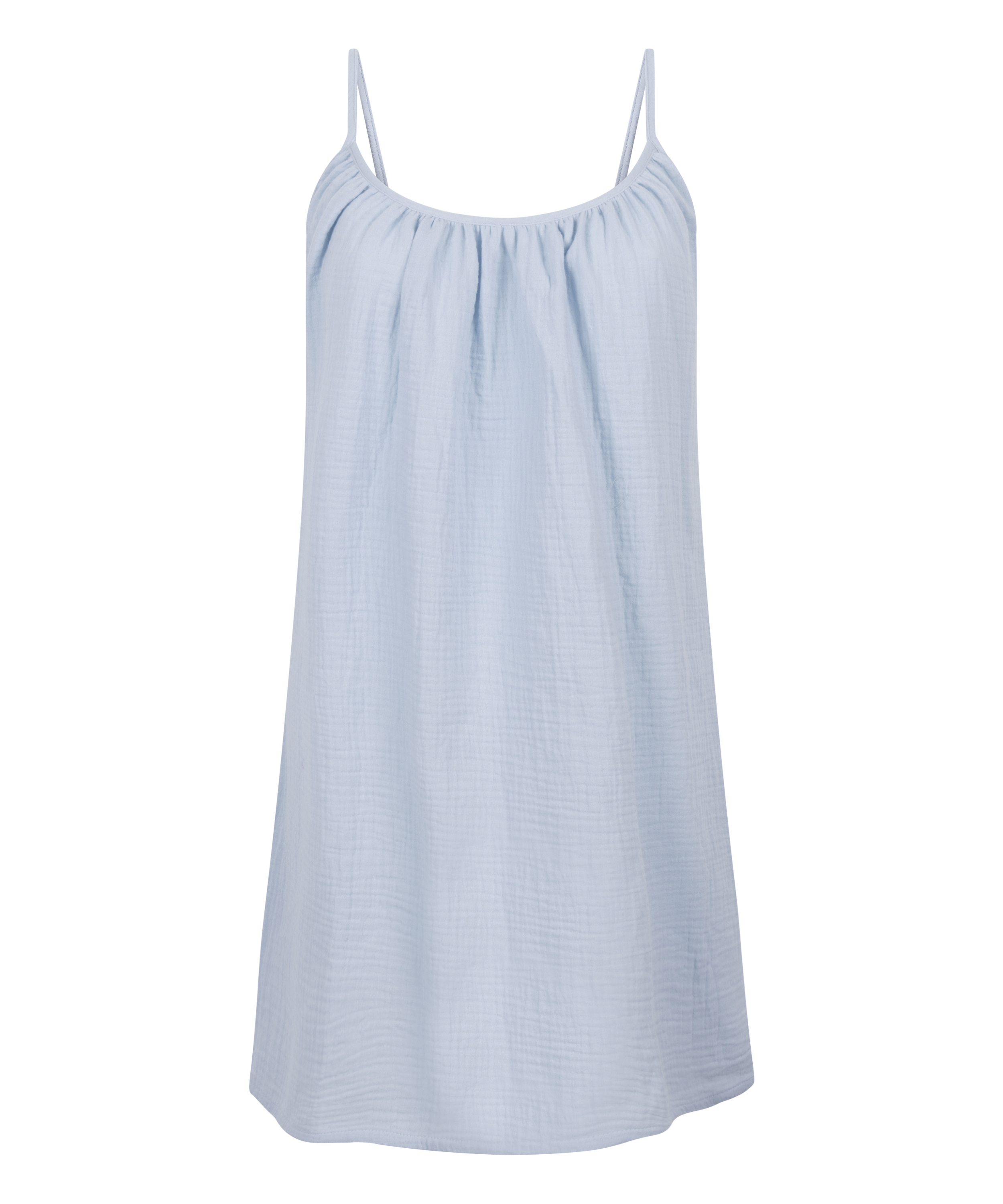 Hold dig komfortabel og kølig i denne ærmeløse natskjorte fremstillet af blød bomuldsmusselin. Den afslappede pasform giver komfort hele natten, og det lette stof er perfekt til varme nætter.