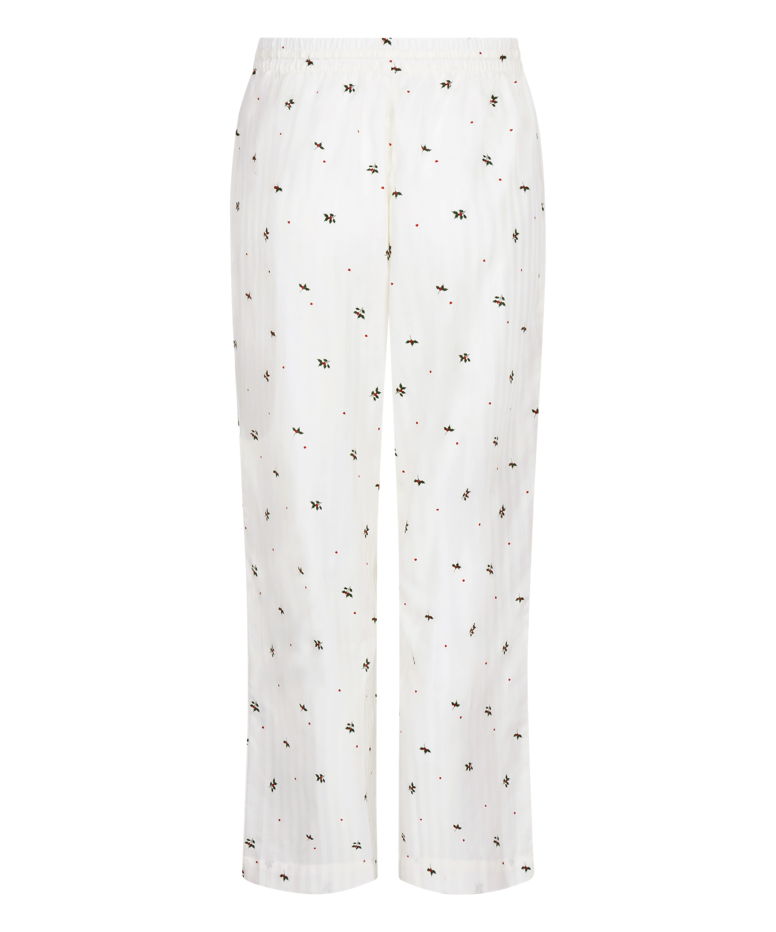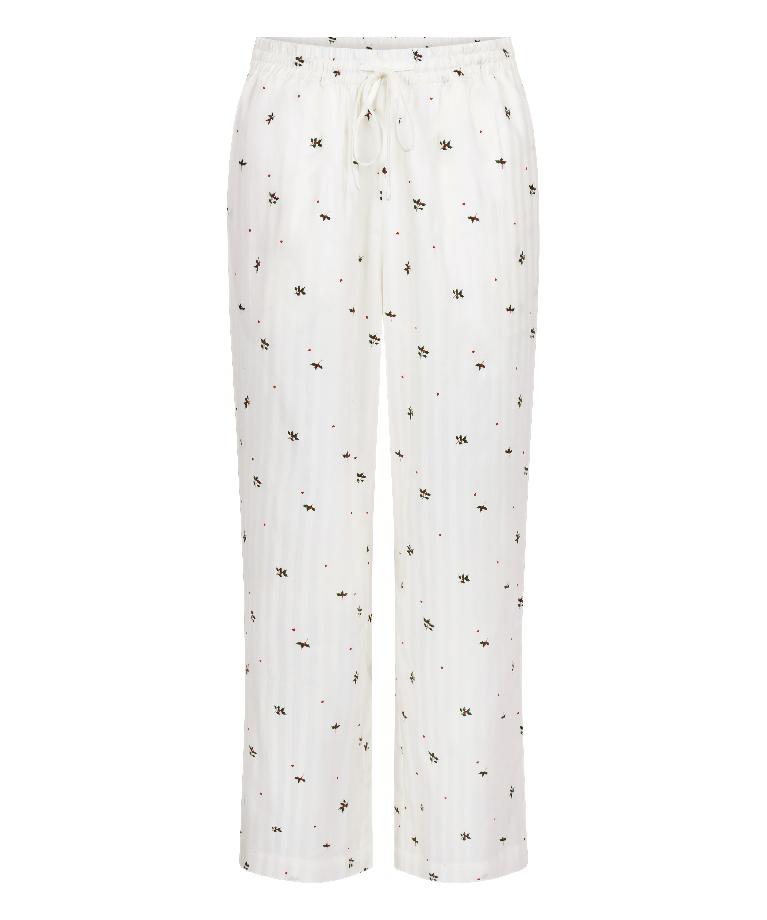 Kom i julestemning med disse hyggelige fleece-pyjamasbukser med et flot misteltenprint. De er lavet af ultrablød fleece og er perfekte til at putte sig med på kølige aftener eller nyde afslappede feriemorgener. Den elastiske linning og den afslappede pasform sikrer komfort hele natten med et muntert sæsonbestemt twist.