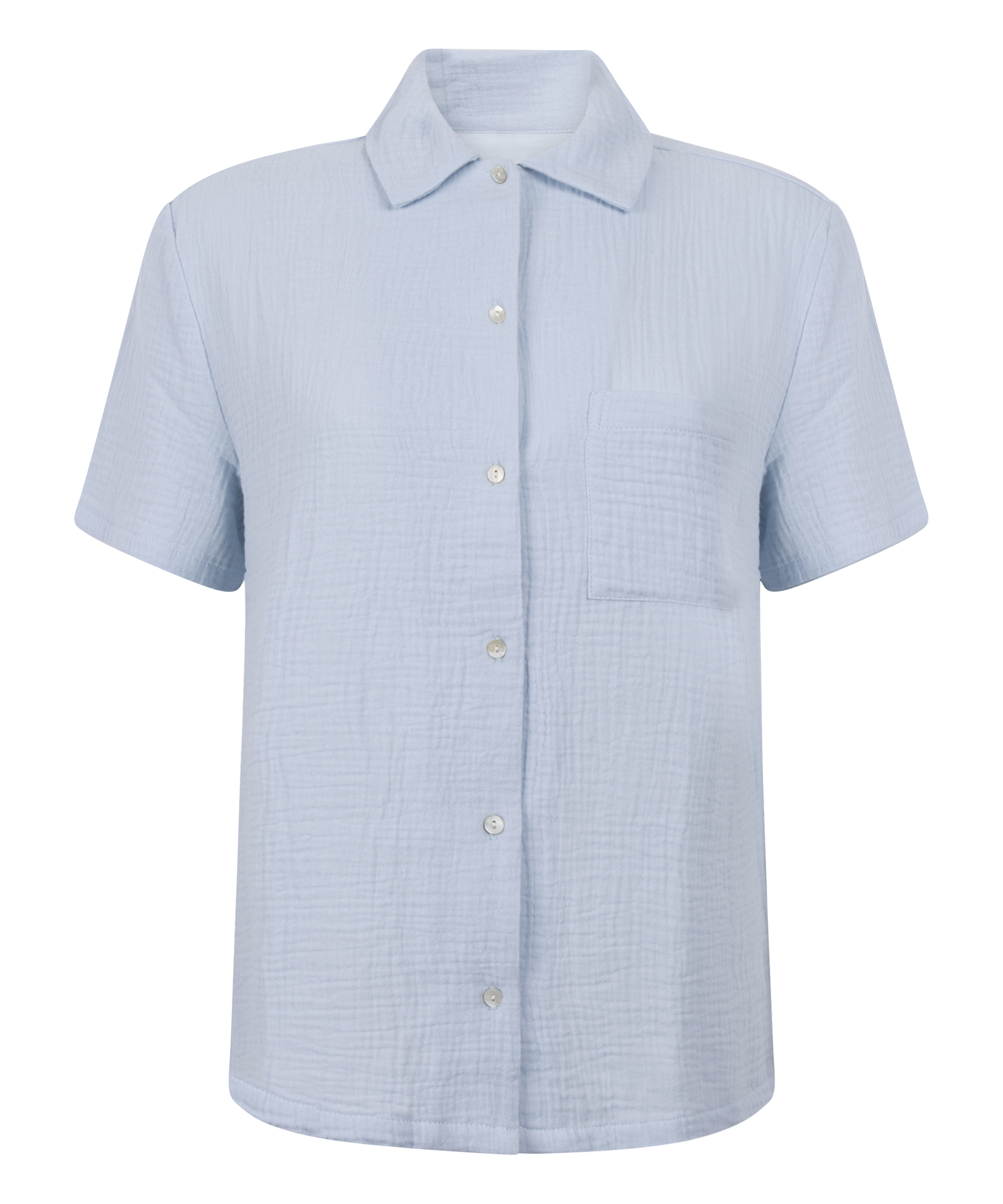 Føl dig godt tilpas i denne klassiske pyjamastop med knapdetaljer foran. Den er lavet af åndbart letvægtsmateriale, perfekt til varme sommernætter. Sæt sammen med de matchende bukserne for at fuldende looket.
