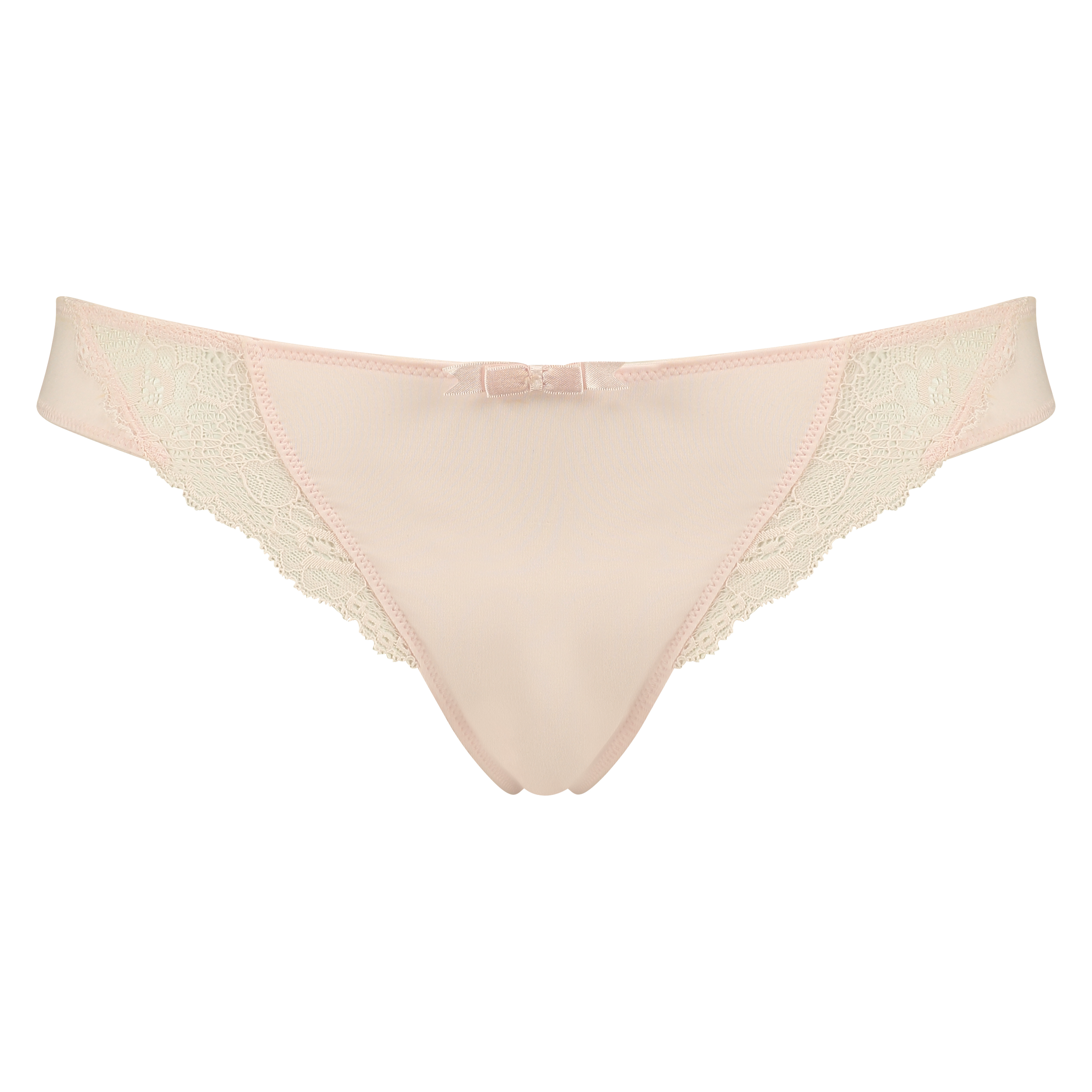 Flot g-streng med lille sløjfe foran. Både for- og bagstykke har blondekanter.