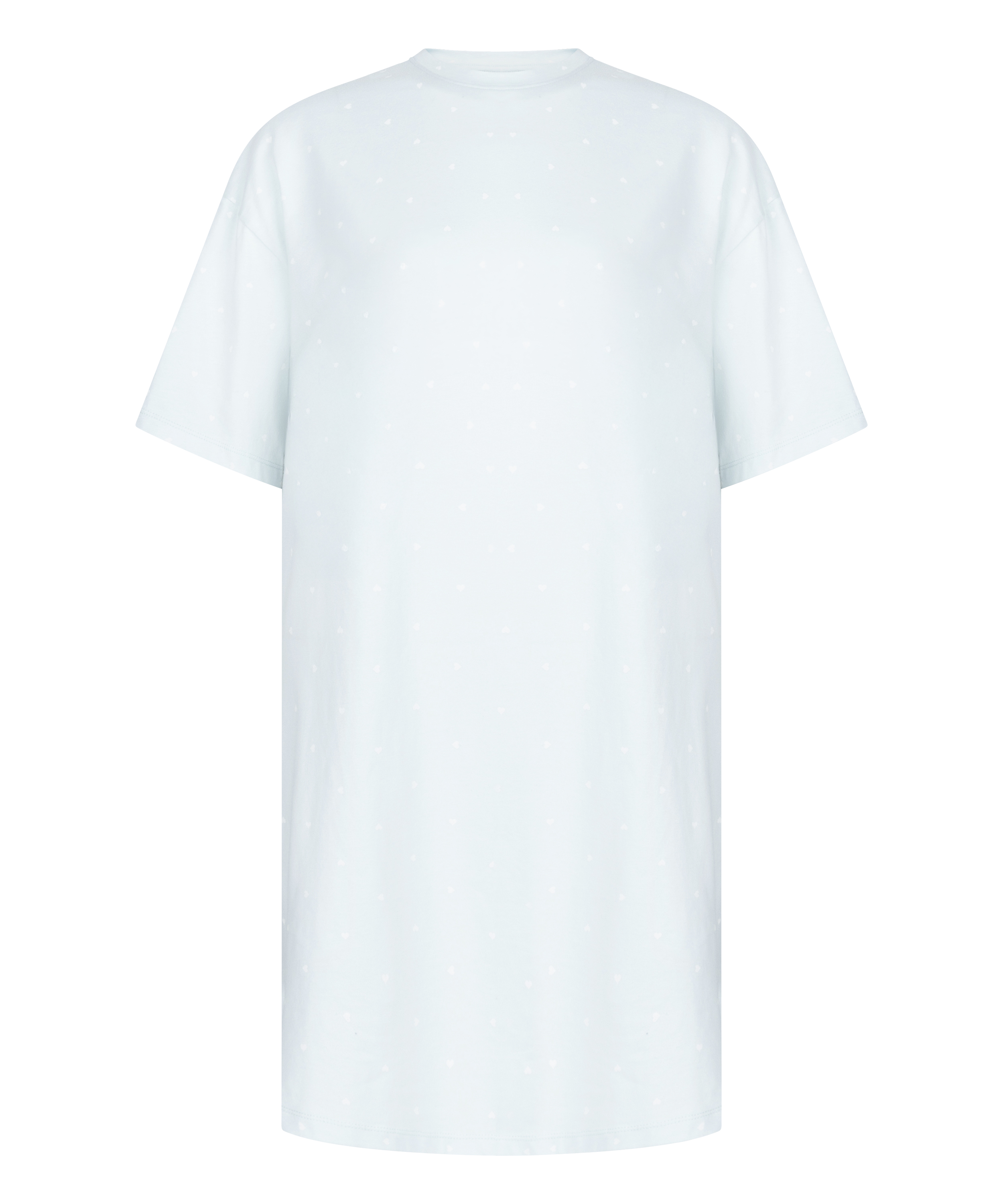 Lad dig omslutte af vores behagelige natkjole. Denne natskjorte er designet til ultimativ afslapning og har en klassisk rund hals. Længden går til lige over knæene, hvilket giver en behagelig og diskret pasform. Kombinér med dine yndlingshjemmesko for at fuldende looket.