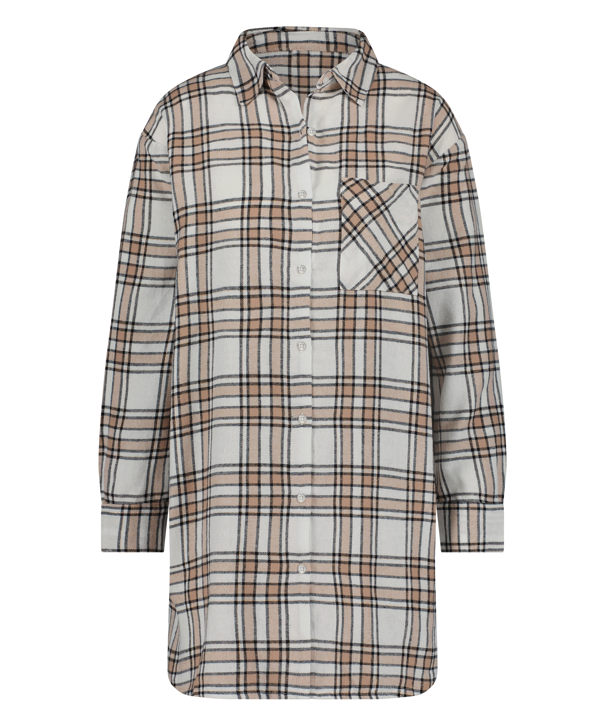 Gå efter komfort med denne dejlige natkjole! Den har et flot ternet tryk og er superblød. Lommen på brystet gør den komplet.